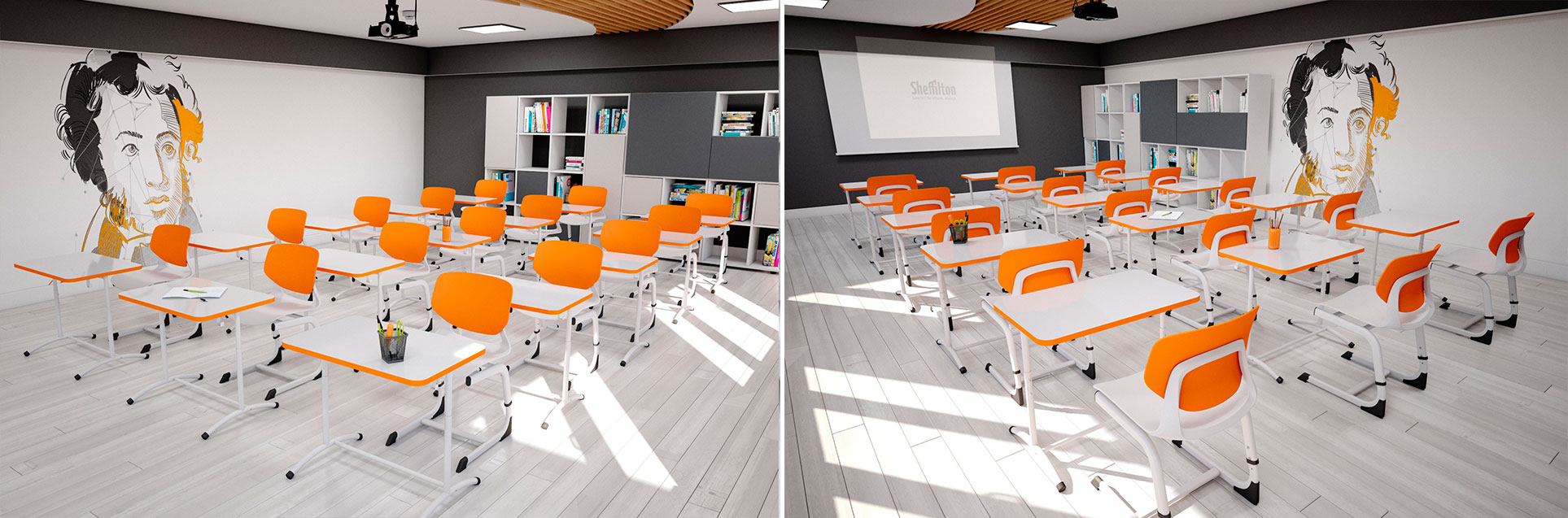 ТМ Sheffilton – один из ведущих производителей школьной мебели в России – предлагает решения, которые соответствуют этим принципам. В коллекции торговой марки можно найти стулья для учебных классов и столовых, столы для индивидуальной и групповой работы, модульные диваны, а также вешалки. Каждый предмет мебели Sheffilton проектируется с учетом принципов эргономики, мобильности и безопасности.