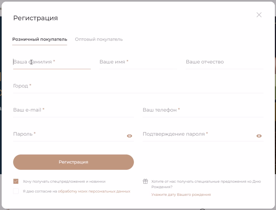 Регистрация на сайте не обязательна, но даёт доступ к индивидуальным скидкам и управлению заказами.