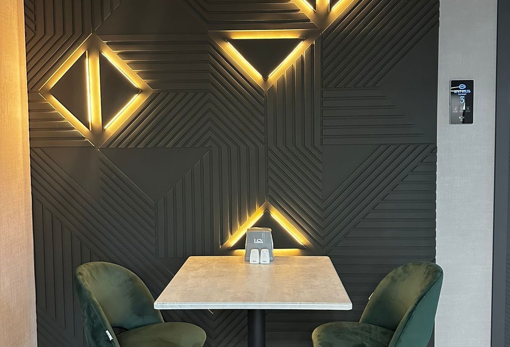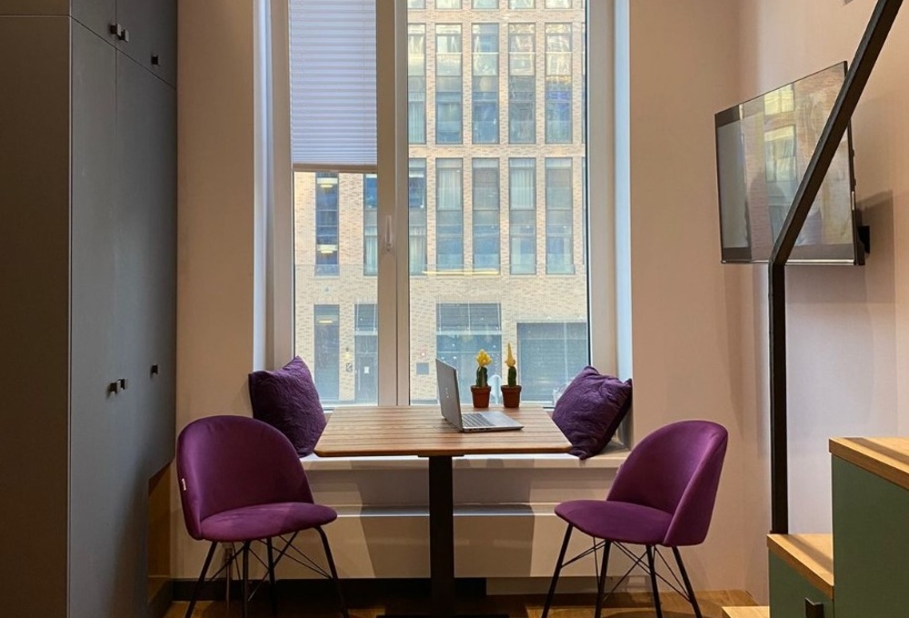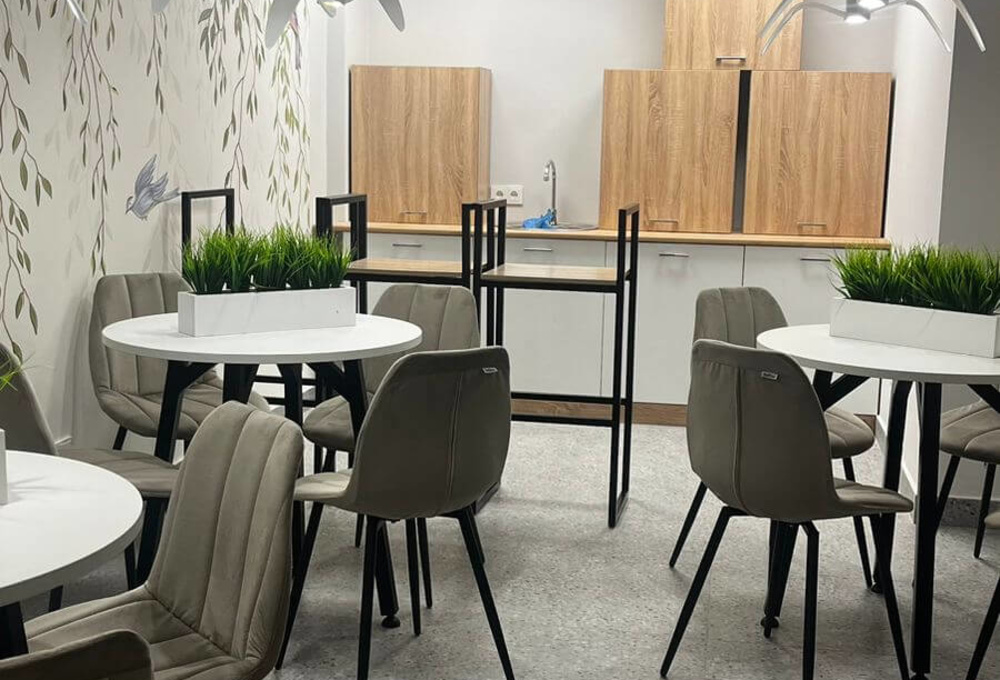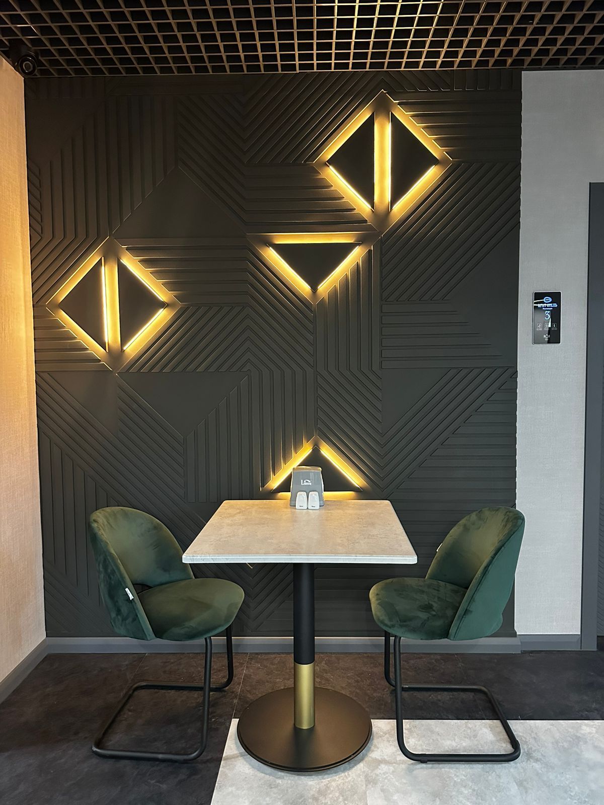 - Модульные мягкие стулья — могут компоноваться в группы, создавая уютные мини-зоны.