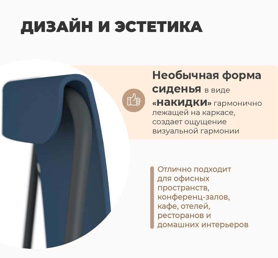 Стул SHT-ST57/S178 воплощает в себе концепцию эстетики и легкости. Необычная форма сиденья в виде "накидки", гармонично лежащей на каркасе, создаёт ощущение визуальной гармонии. Уникальный дизайн стула станет настоящим акцентом в интерьере офисных пространств, конференц-залов, кафе, отелей, ресторанов и дома, привлекая внимание и добавляя характер в пространство.