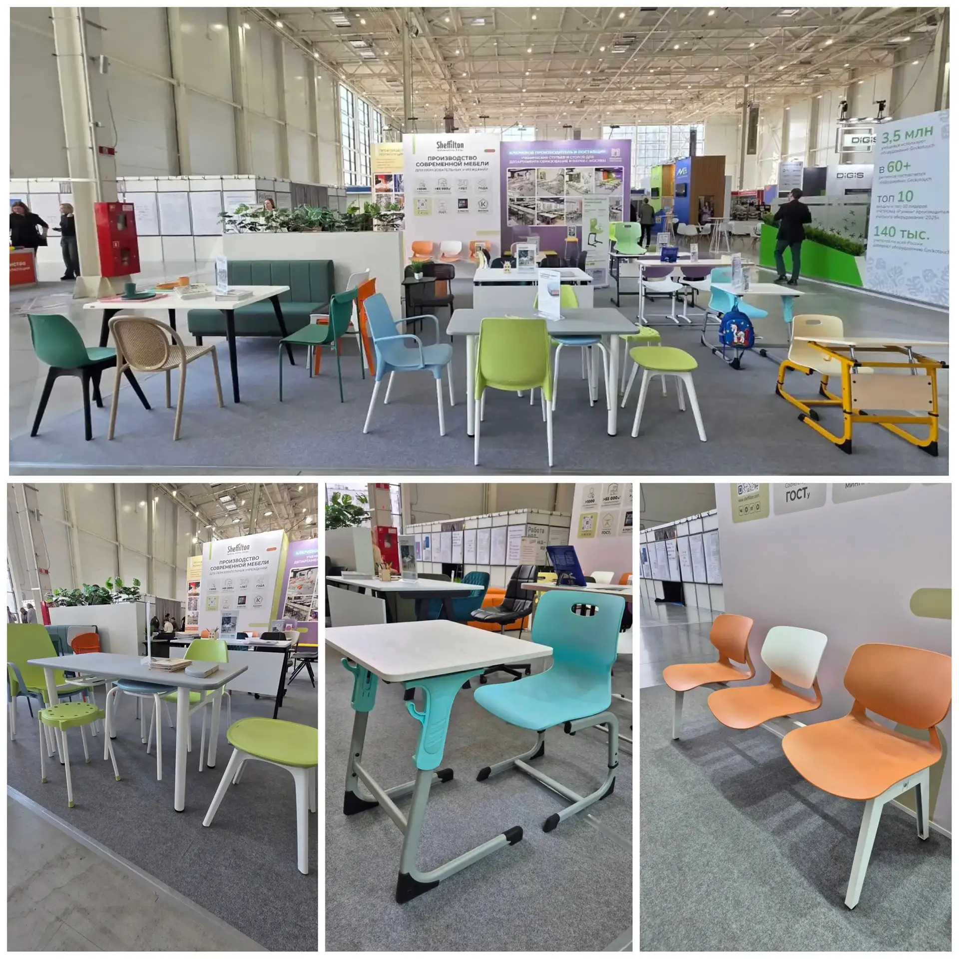 На выставке были представлены решения для образовательных учреждений: ученические столы и стулья, мебель для аудиторий, школьных столовых, а также зон отдыха и ожидания. Мы показали современные, удобные и функциональные модели, разработанные с учетом требований к эргономике, надежности и актуальному дизайну.