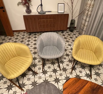 Обивка сидения выполнена из рогожки, в качестве мягкого наполнителя используется поролон.