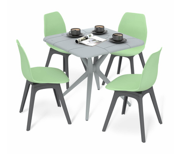 Современный комплект - один из инновационных и стильных предметов мебельной обстановки. Стол из армированного пластика отличается своей прочностью, легкостью, долговечностью и считается самой востребованной мебелью среди современных потребителей. Главная концепция модели стула - воздушность и легкость, что позволяет расширить пространство в помещении. Выразительные линии и треугольные опоры создают оригинальную форму стула, представляя собой единую конструкцию. Современный стиль позволяет добавить комплект в любой дизайн дома, сада, кафе, бара, ресторана, офиса, общественных учреждений, залов ожидания и домашних интерьеров. Вы произведете впечатление на любого, кто посетит Ваше заведение или дом.