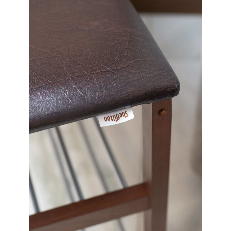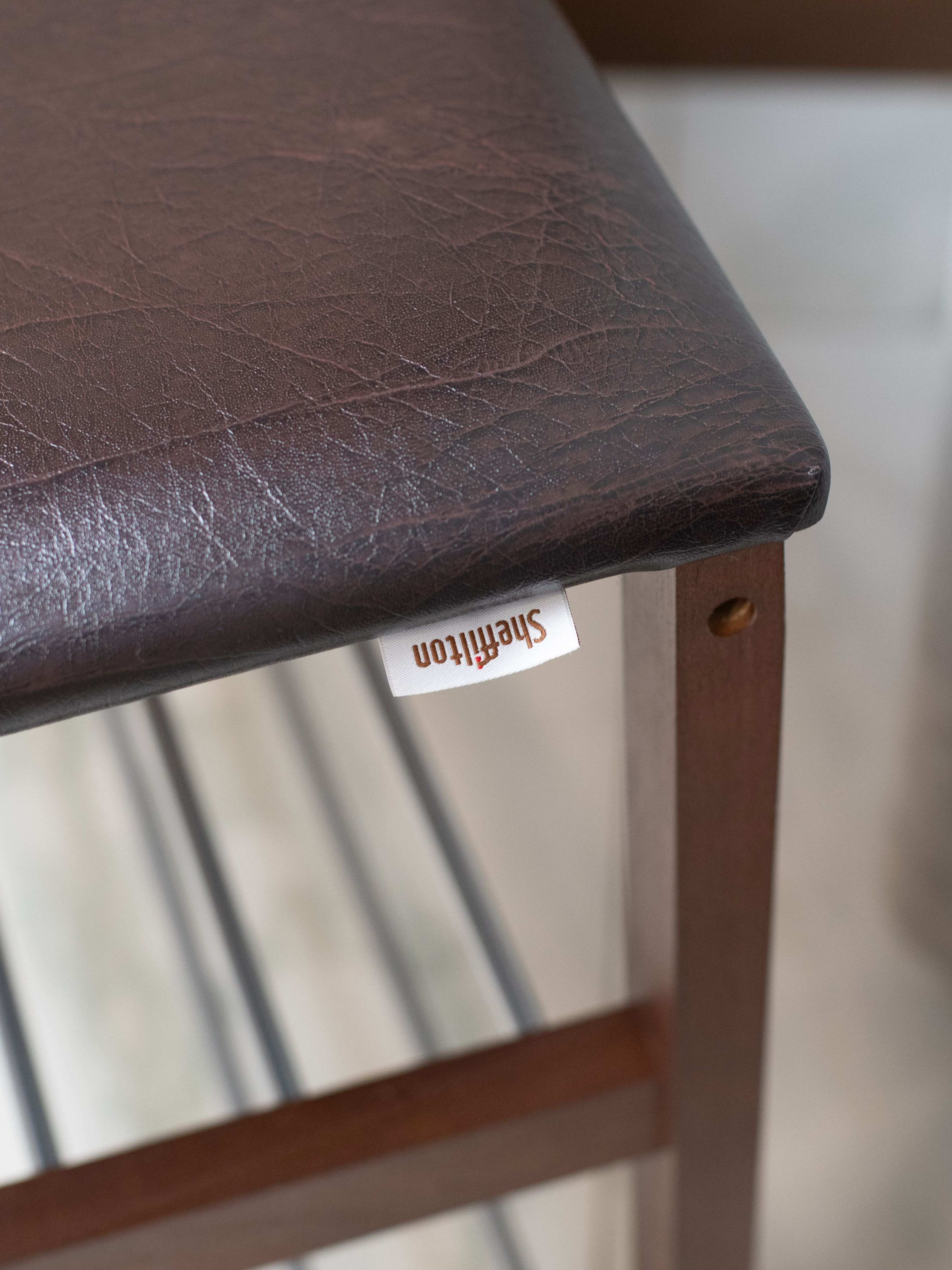 Ножки выполнены из массива дерева, толщиной 35 мм., сидение из кож.зама, полки из металла, диаметр/толщина трубы 12х0,8 мм.