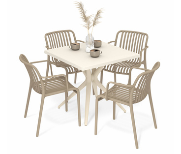 Благодаря повышенным АТМОСФЕРОСТОЙКИМ СВОЙСТВАМ, столешница, подстолье, сиденье хорошо переносят воздействие погодных условий. Не деформируются и имеют более устойчивое сопротивление к изменению цвета.
