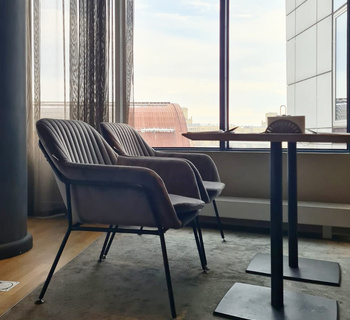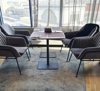 Мягкое уютное кресло в современном стиле, обитое серым микровелюром, на каркасе из черного металла. Благодаря своему универсальному дизайну и лаконичному сочетанию цветов такое кресло гармонично впишется практически в любой современный интерьер кафе, бара, ресторана, офиса, общественных учреждений, залов ожидания или дома.