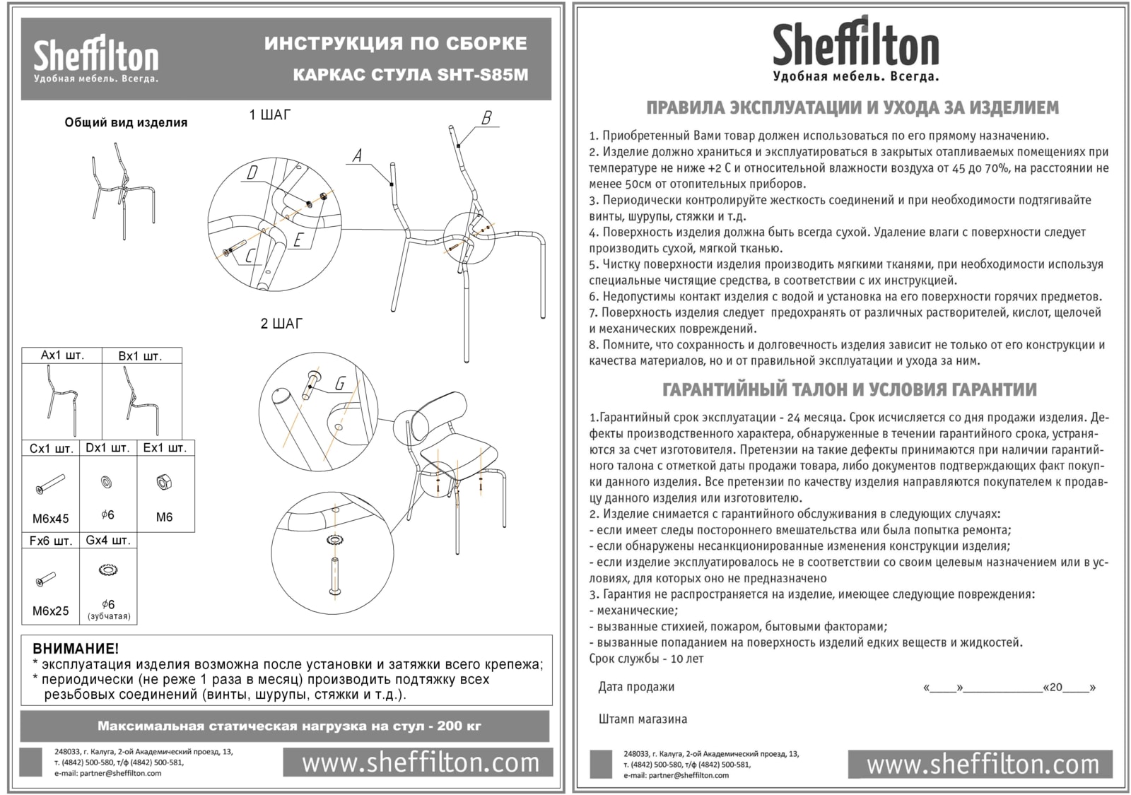 СПЕЦИАЛЬНЫЕ ПОДПЯТНИКИ каркаса обеспечивают защиту покрытия от царапин и повышают устойчивость стула. К каркасу приложен комплект крепежа и схема сборки.