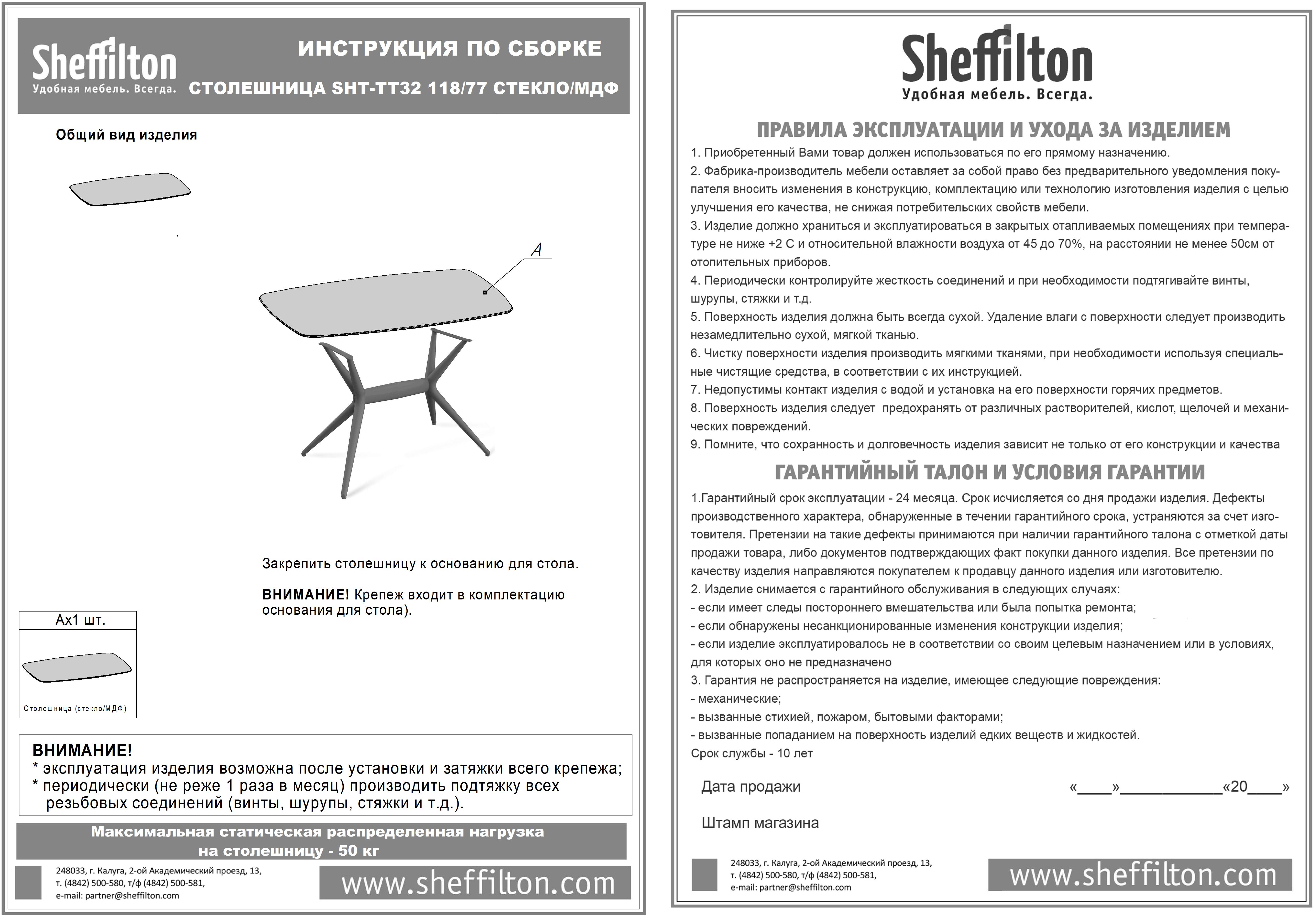 Столешница выполнена из закаленного стекла с ультрафиолетовой печатью. Одним из главных преимуществ закаленного стекла является его стойкость к высоким температурам, вибрационным нагрузкам, ударам и царапинам. Также стекло обладает высокой ударной вязкостью - энергия от столкновения с бьющим предметом распределяется относительно продолжительное время (по сравнению с обычным стеклом), что приводит к разрушению на очень мелкие осколки. Стекло закреплено на МДФ с отступом 50 мм.