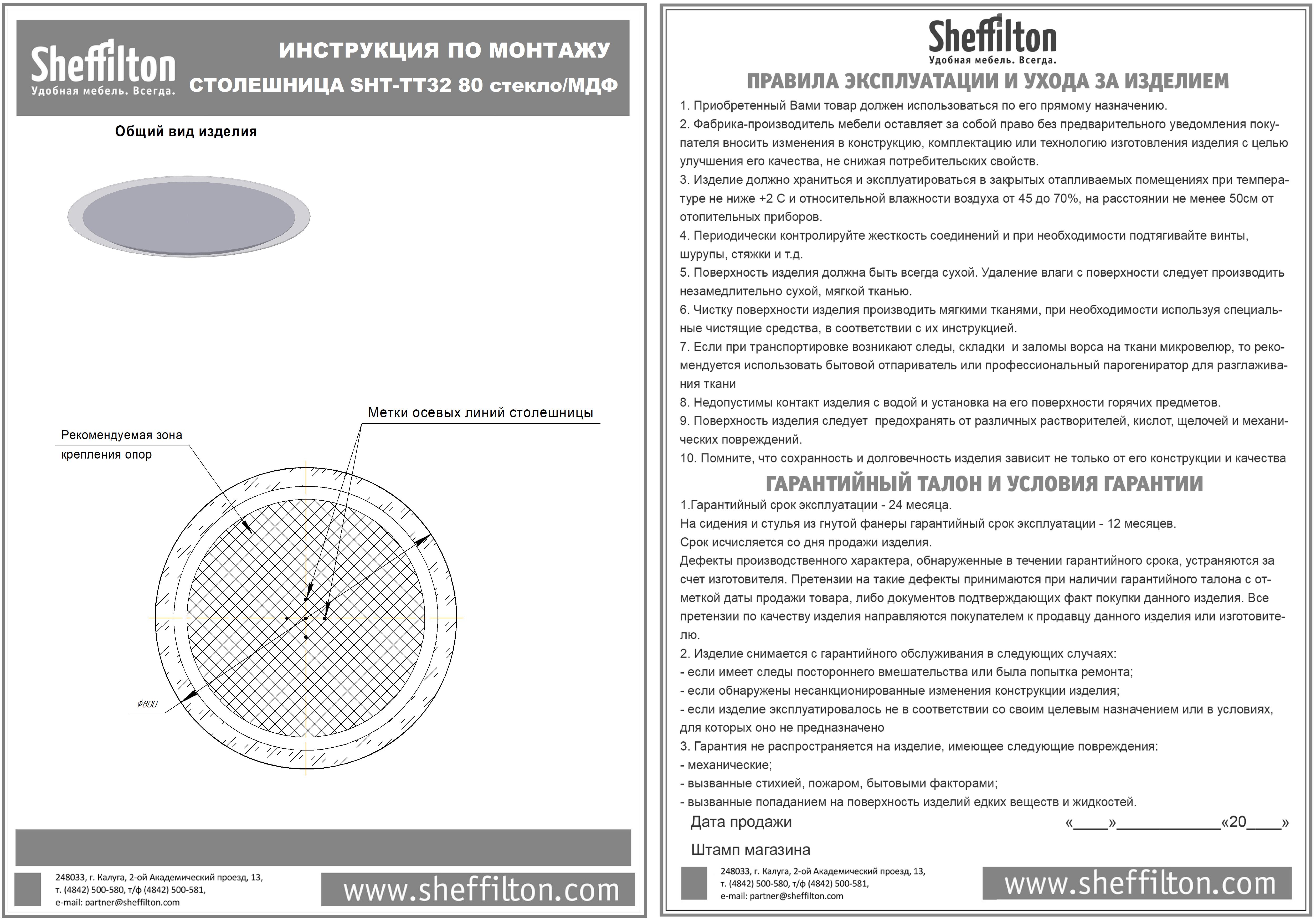 Стеклянная столешница неприхотлива в уходе. Возникшие загрязнения можно очистить влажной тканью, при необходимости можно использовать специальное чистящее средство для стекол. Для хранения и содержания столешницы не требуются особые условия.