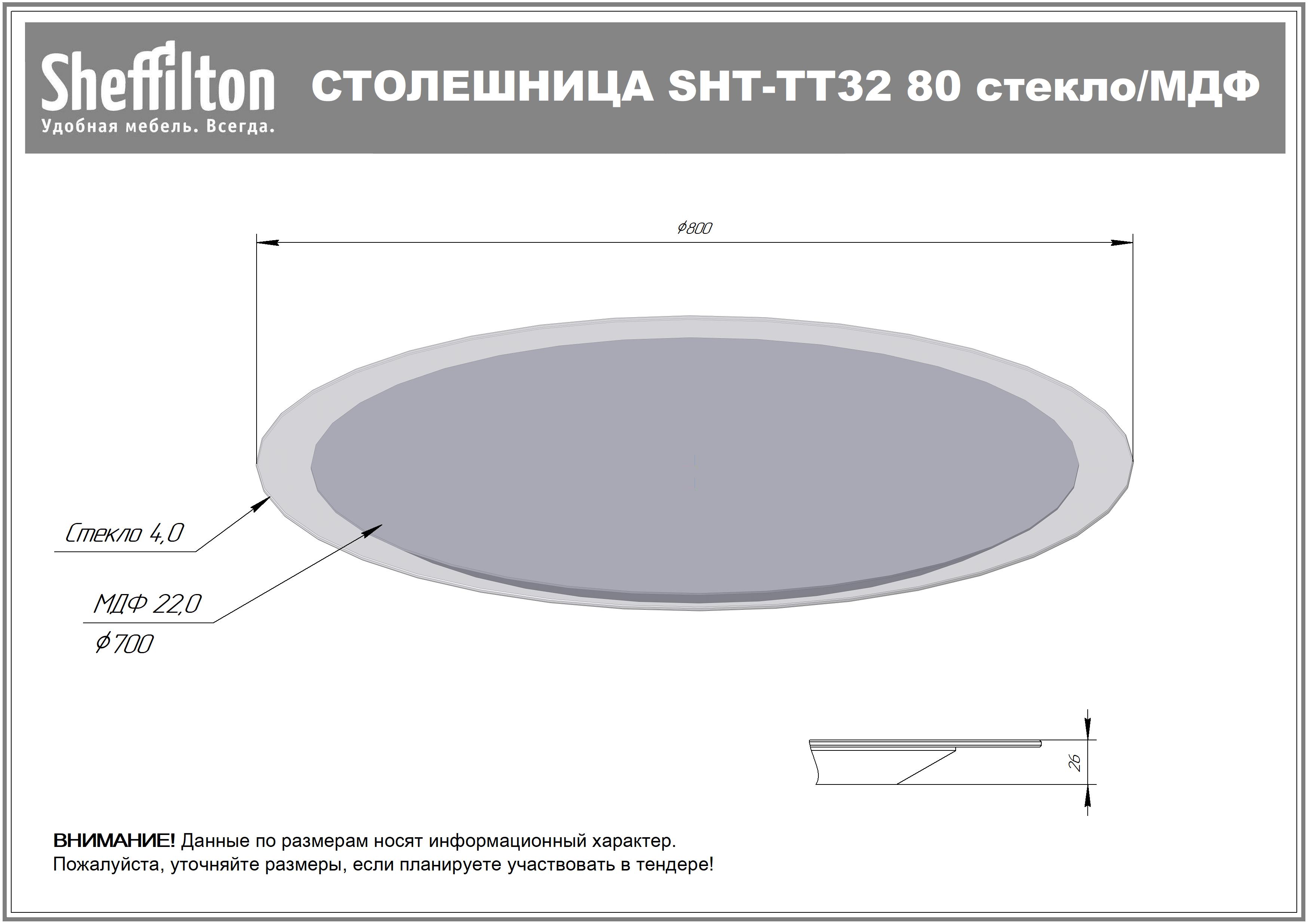 Толщина столешницы – 26 мм. (основа из МДФ - 22мм, стекло - 4мм)