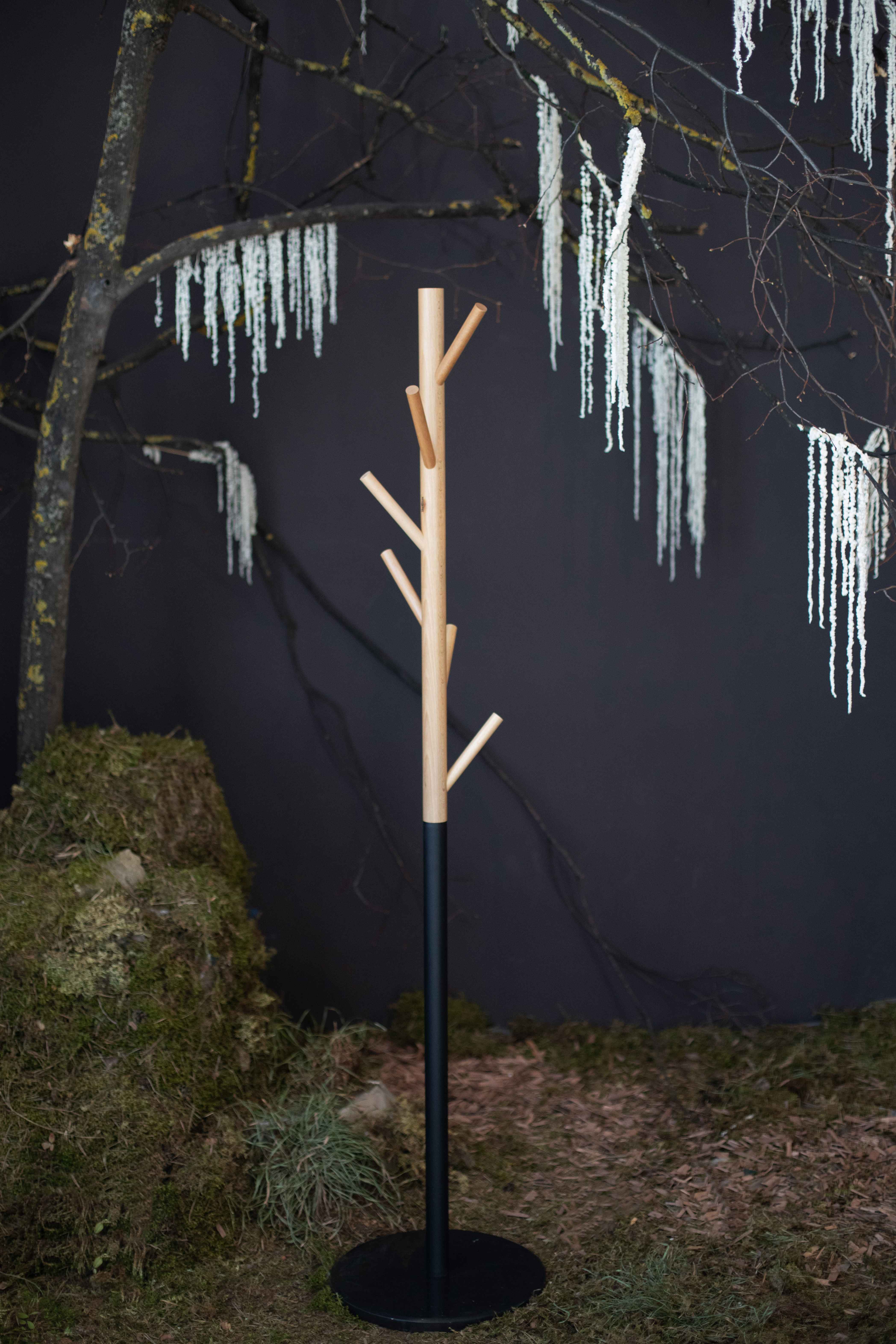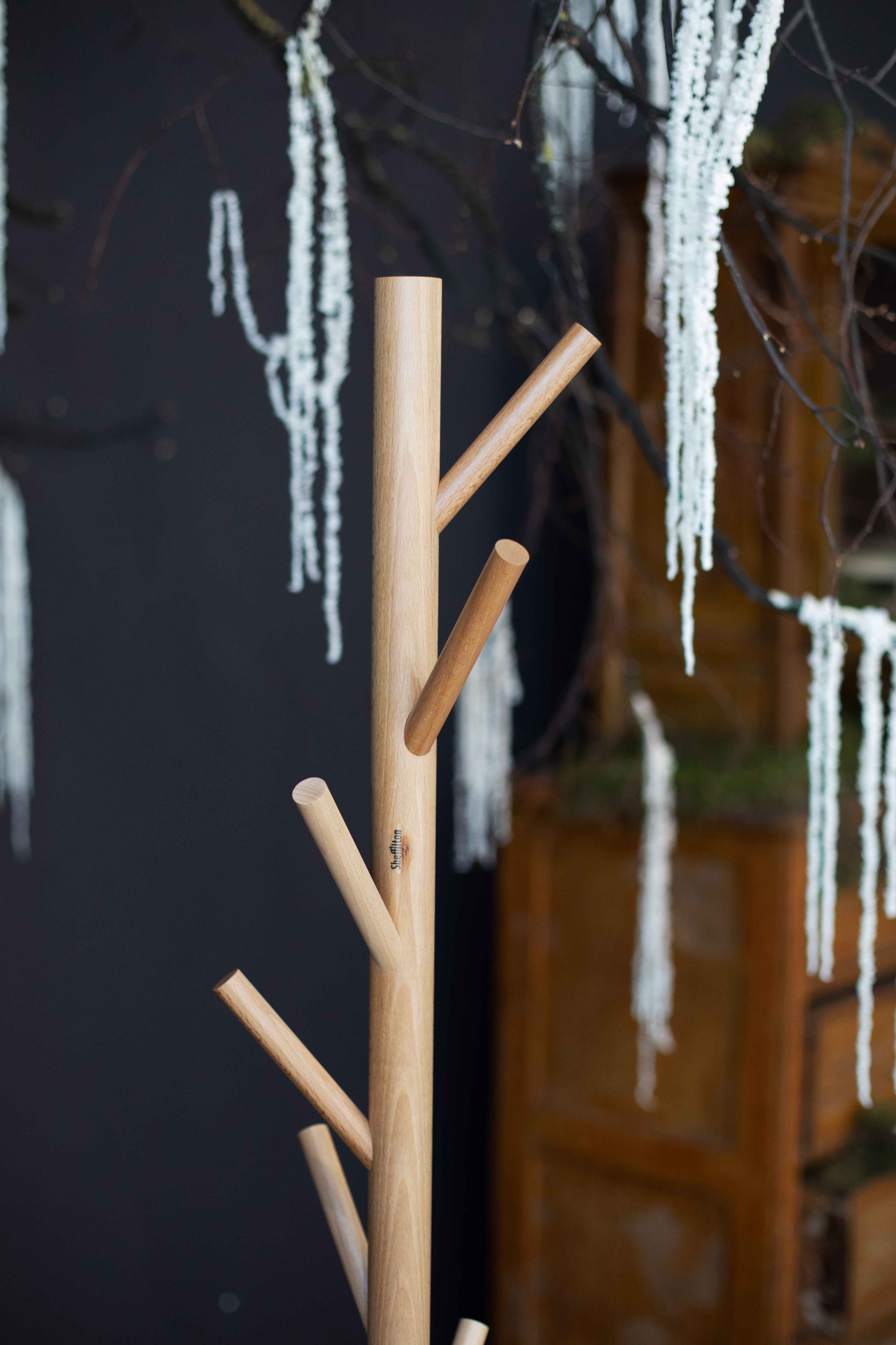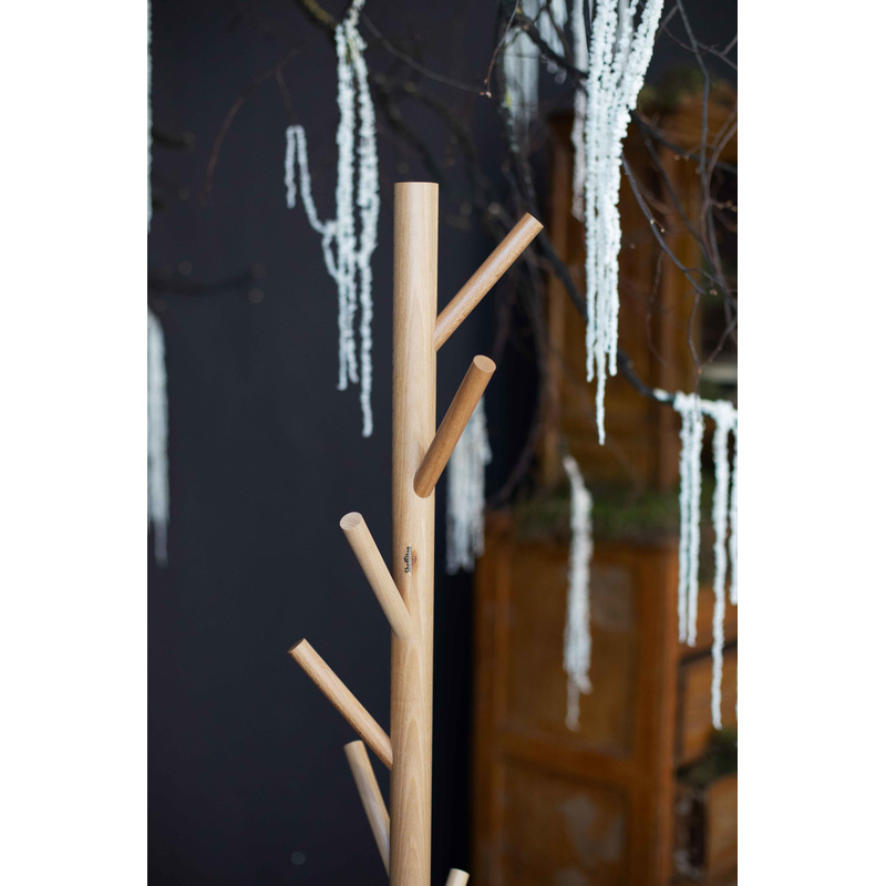 Верхняя часть стойки и крючки выполнены из дерева (бук).