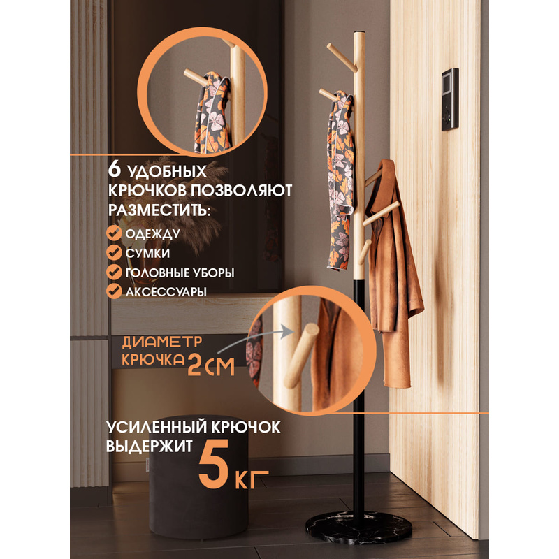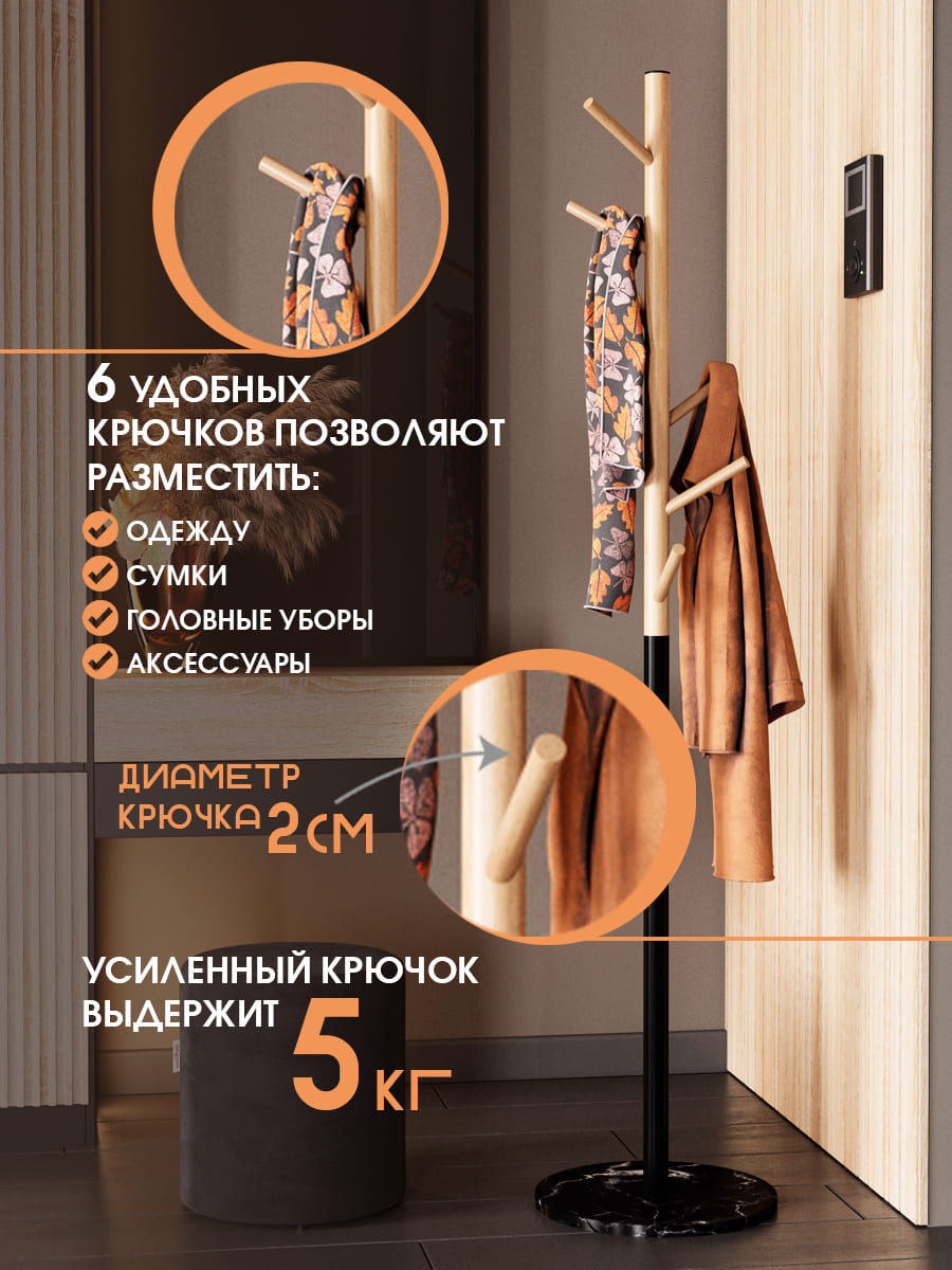 Вешалка напольная SHT-CR25 – готовое решение для прихожей с современным или скандинавским дизайном. Отсылка к эко-стилю позволяет вписать модель в различные интерьерные решения, привнести в оформление комнаты ощущение единения с природой.
