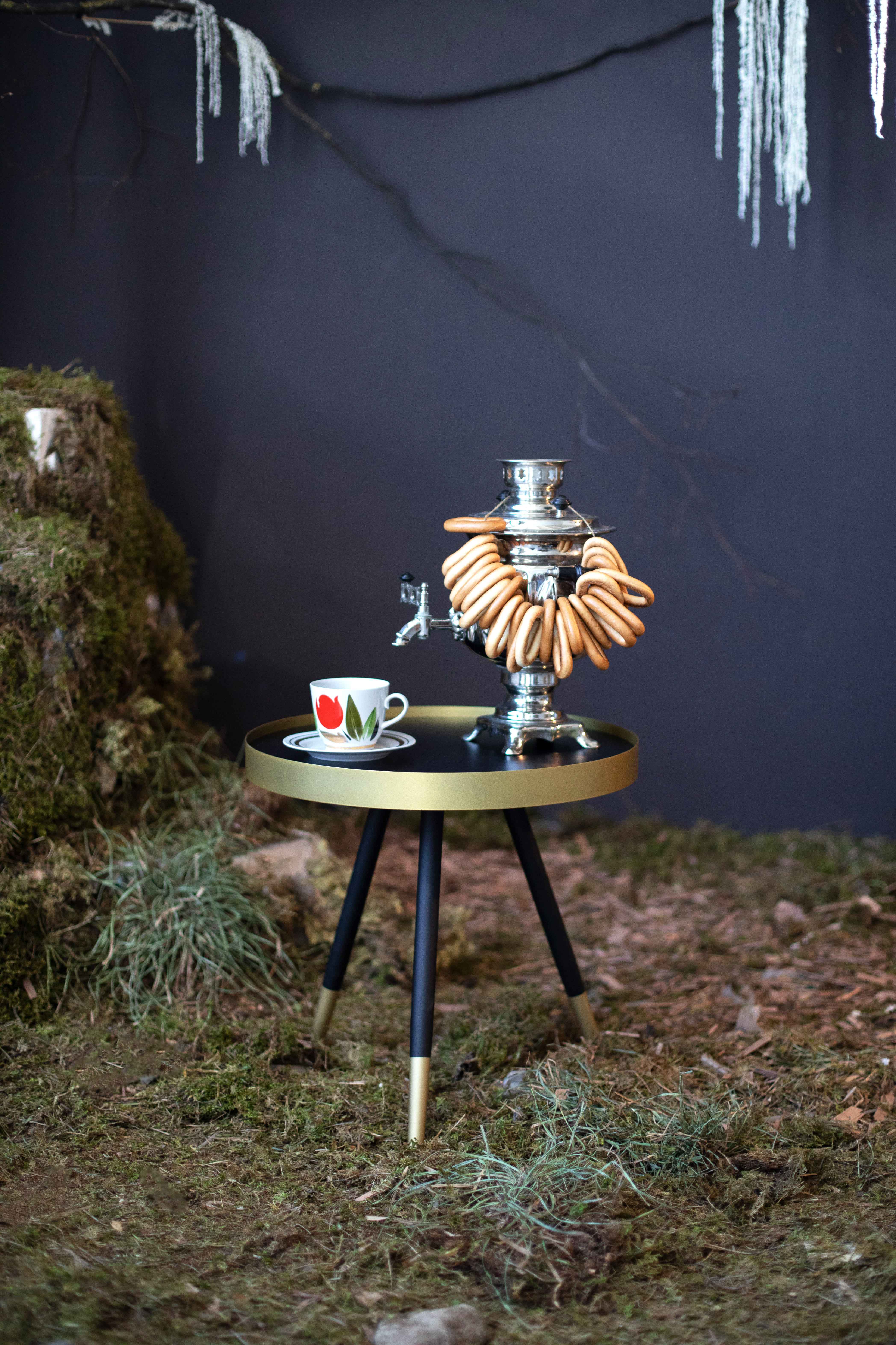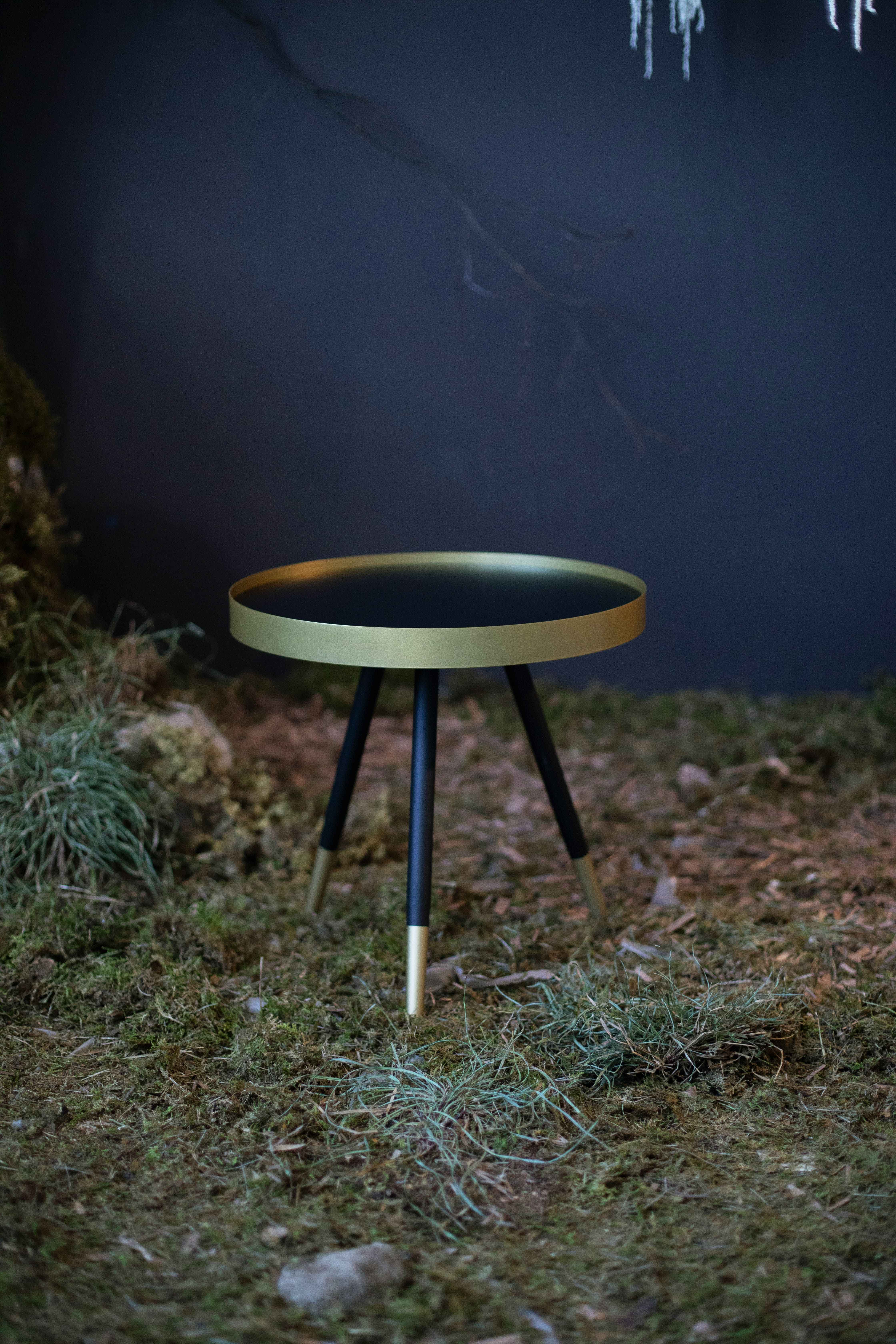 Столешница черная с золотом - необычное дизайнерское решение для интерьера! Столешница из МДФ отличается повышенной жесткостью и устойчива к воздействию влаги. Материал не содержит и не выделяет вредных веществ. Диаметр столешницы 445 мм.