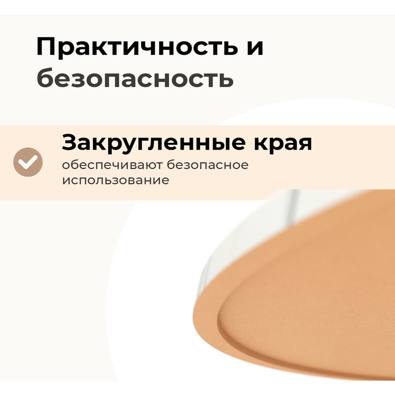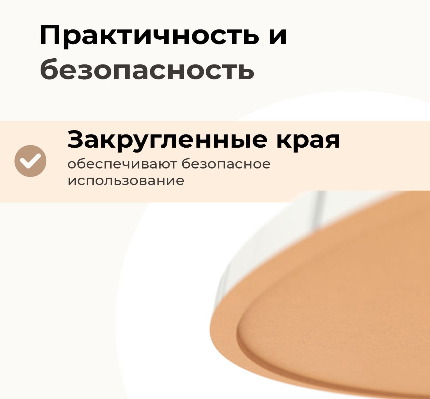 Столешница имеет плавный закругленный переход от лицевой поверхности к боковым кромкам, что добавляет особую эстетику и обеспечивает безопасное использование.