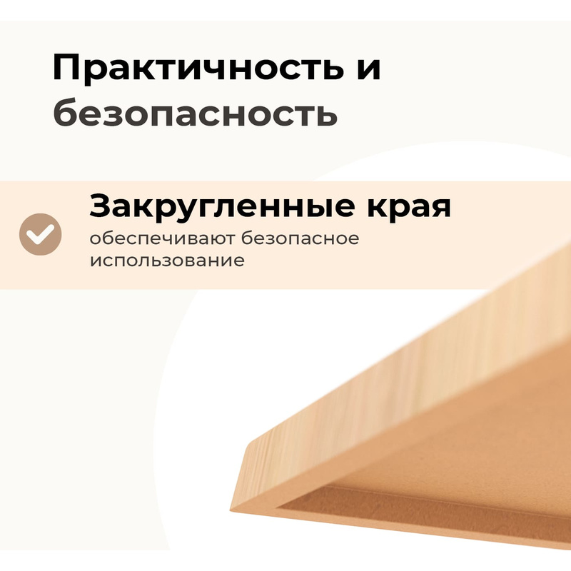 Столешница имеет плавный закругленный переход от лицевой поверхности к боковым кромкам, что добавляет особую эстетику и обеспечивает безопасное использование.