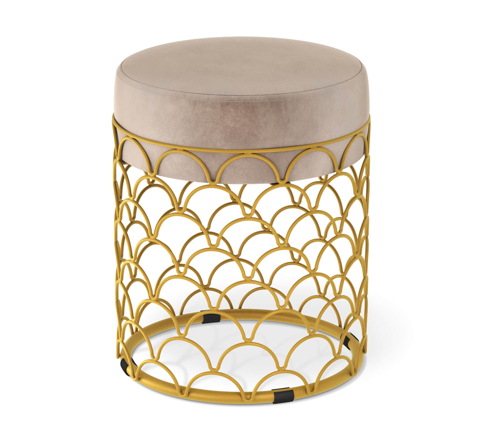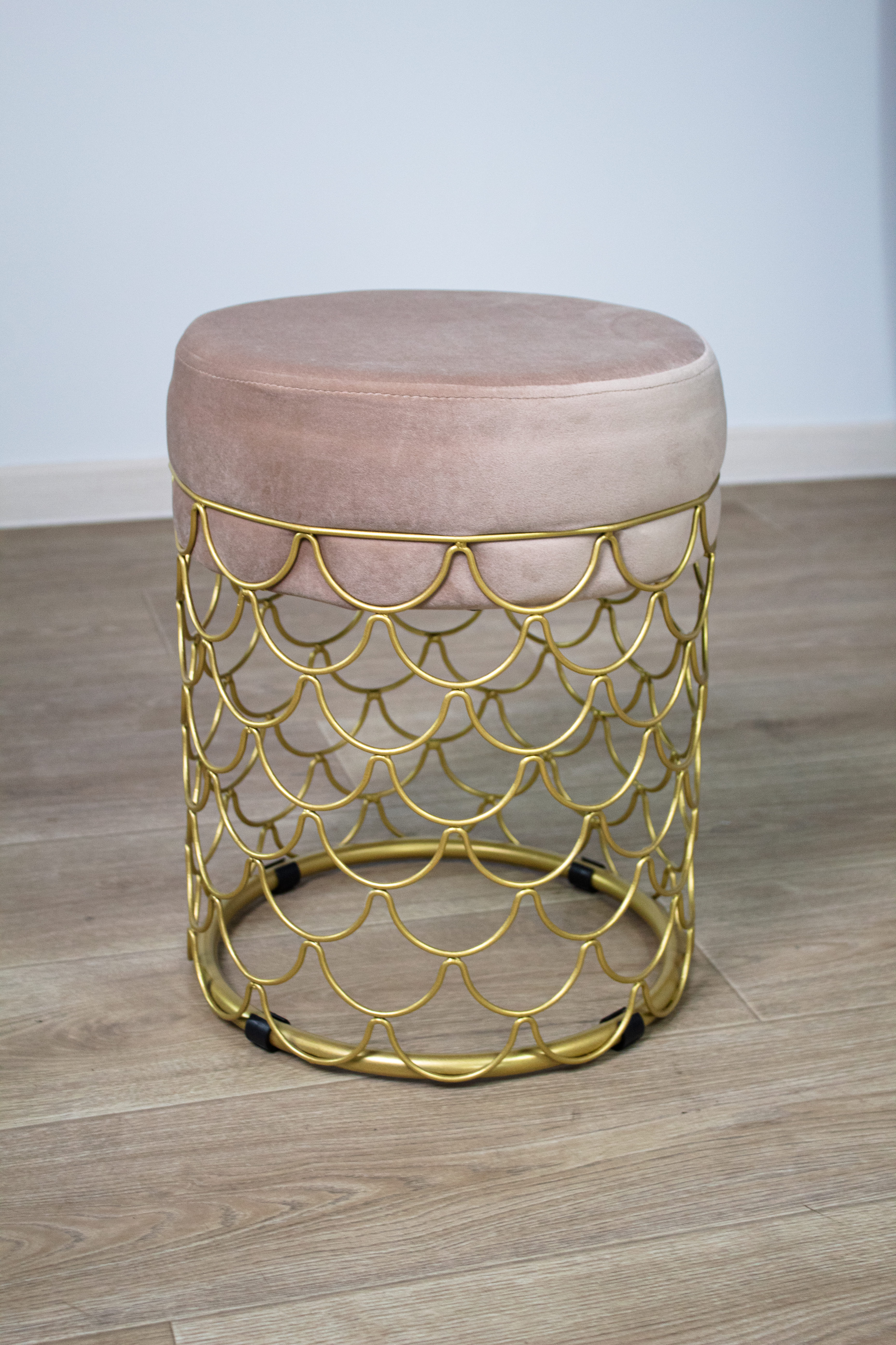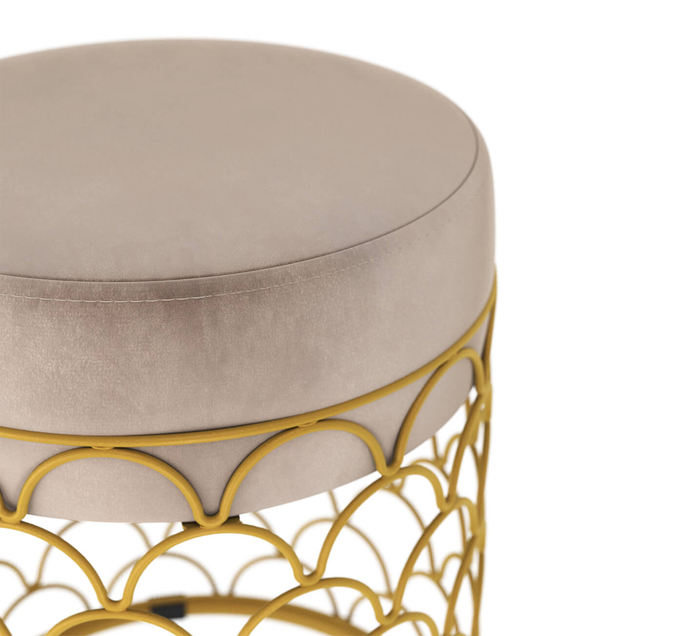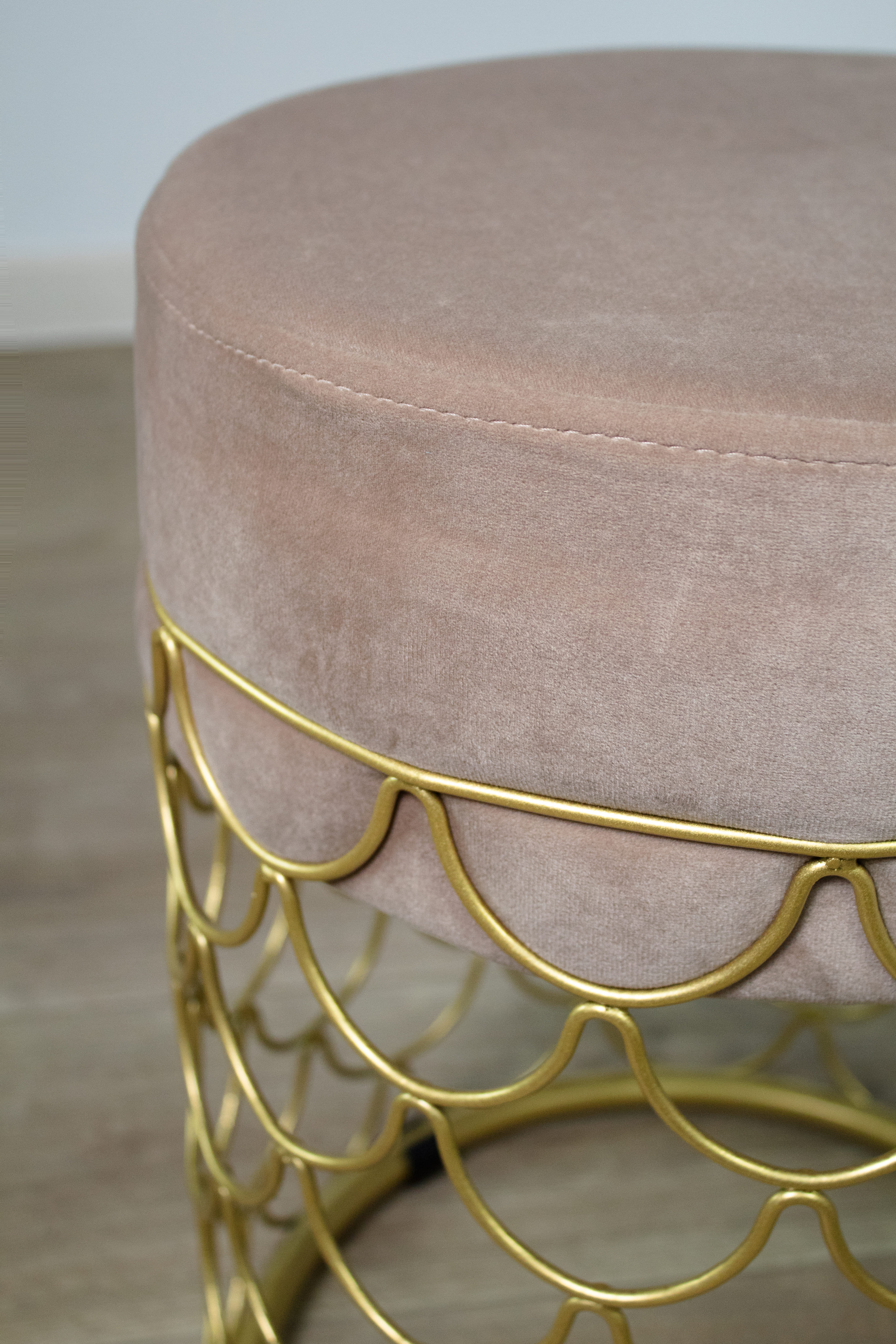 Пуф добавит уюта и разбавит Ваш интерьер. Главное украшение золотое металлическое основание с тонкими элементами из прутка. Надежность металла и мягкость ткани прекрасно сочетаются в готовом исполнении пуфа.