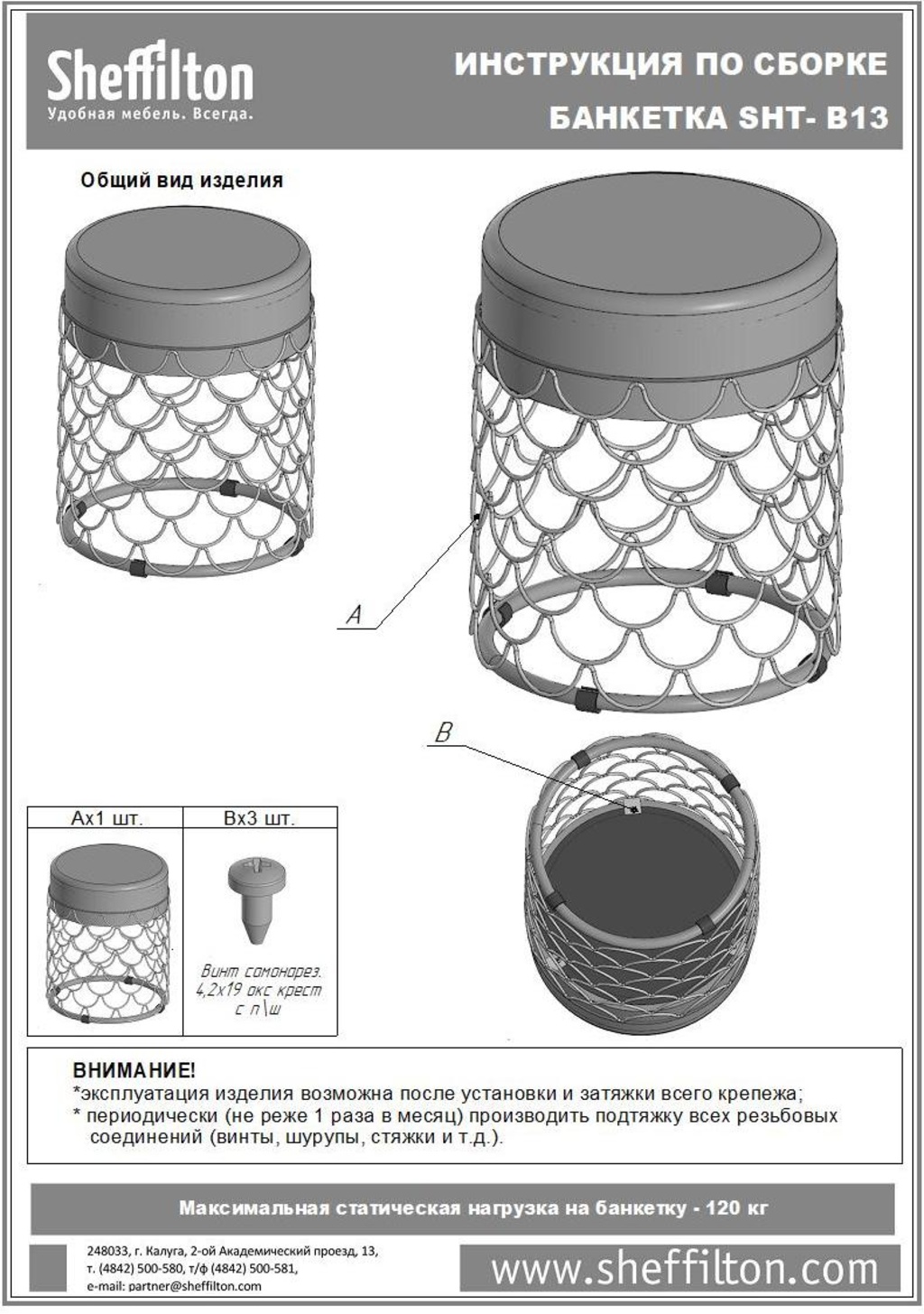 Максимальная статическая нагрузка - 120 кг.