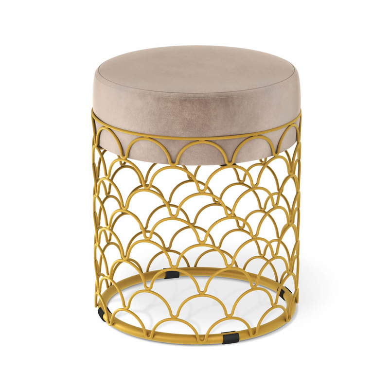 Пуф добавит уюта и разбавит Ваш интерьер. Главное украшение металлическое основание с тонкими элементами из прутка. Надежность металла и мягкость ткани прекрасно сочетаются в готовом исполнении пуфа.