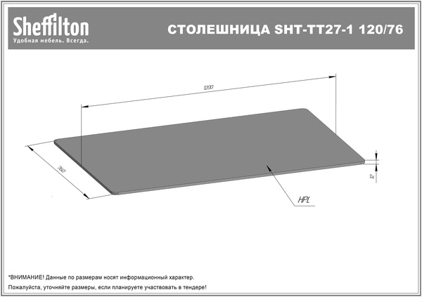 Столешница SHT-ТT27-1 120/76 пластик HPL черный