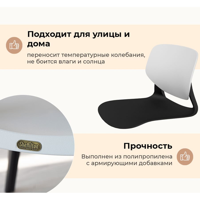 Сиденье выполнено из полипропилена с армирующими добавками, благодаря которым повышается жесткость и надежность. Изделие устойчиво к ударным воздействиям, а также негативным воздействиям окружающей среды и появлению царапин.