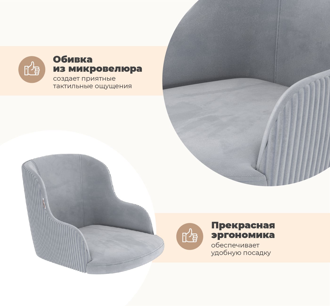СТИЛЬНЫЙ ДИЗАЙН. Волнообразные подлокотники придают сидению классический вид. Благодаря модному цвету микровелюра – готовое кресло способно преобразить обстановку и добавить стиля! Сидение отлично смотрится при любом варианте освещения: и естественном, и искусственном.
