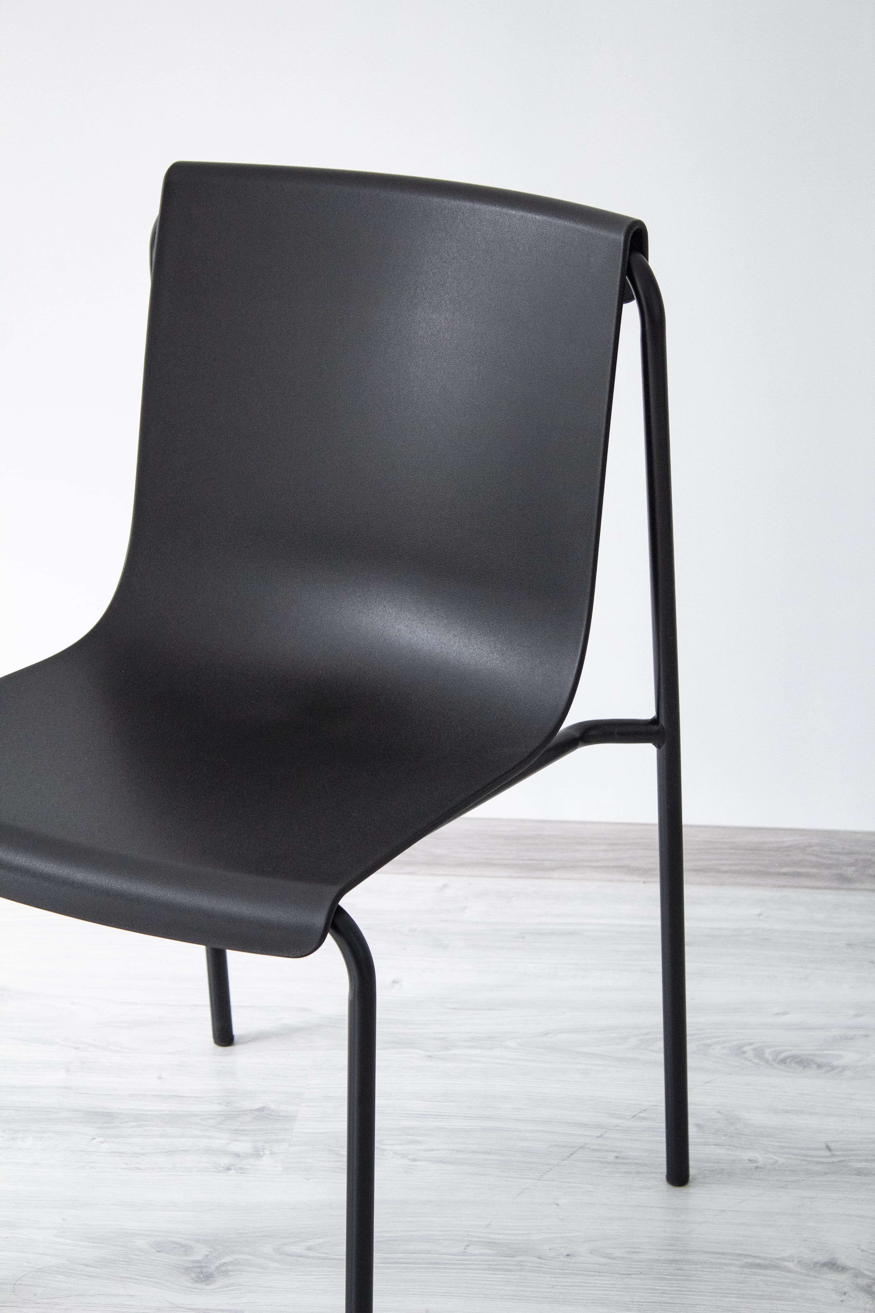 Сидение изготовлено из полипропилена с армирующими добавками, каркас выполнен из металла с порошковым покрытием. Все это обеспечивает высокую жесткость и надежность конструкции. Стул устойчив к ударам, воздействиям окружающей среды и появлению царапин.
