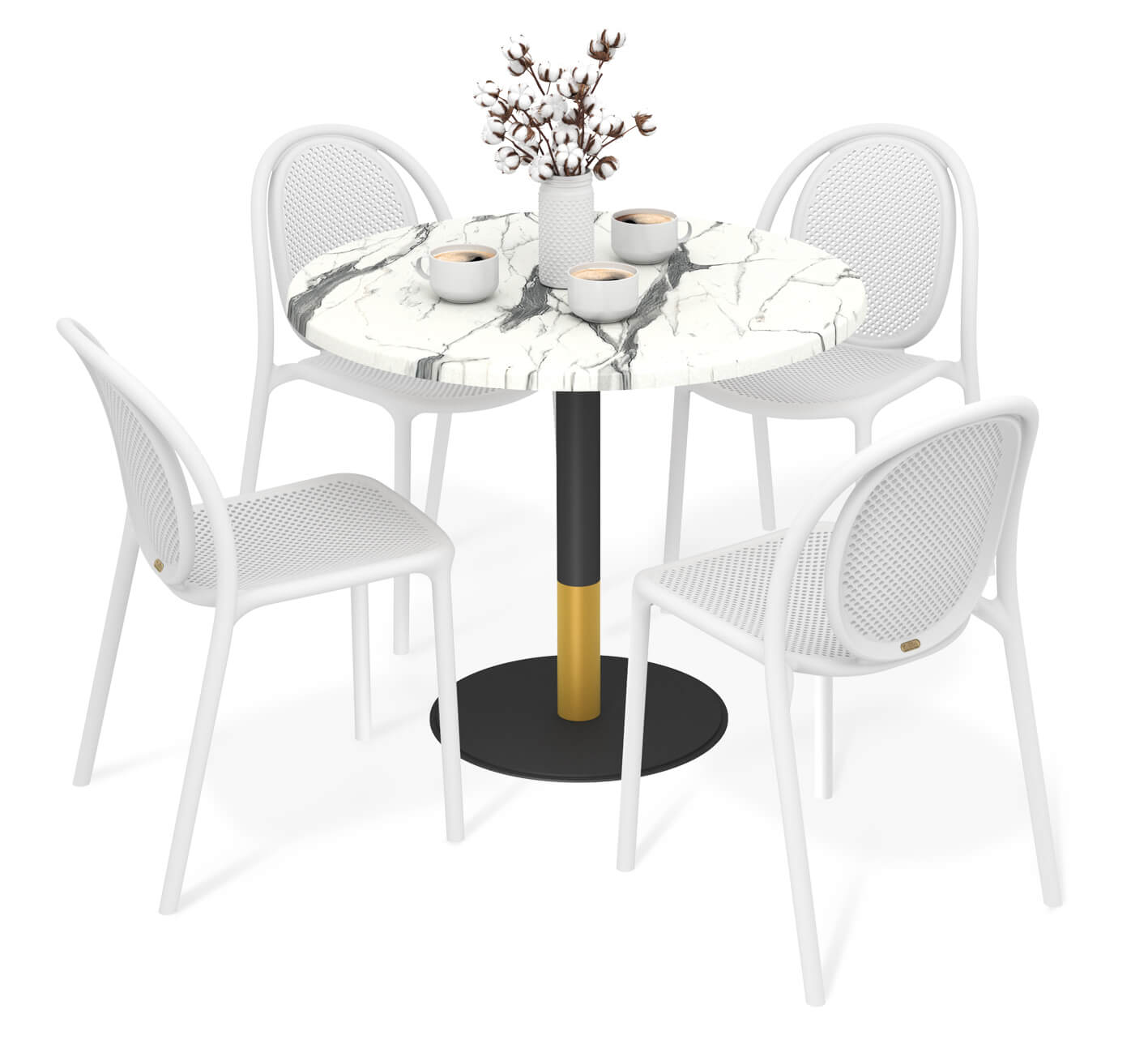 Обеденная группа SHT-DS307 будет гармонично и со вкусом смотреться не только в помещении, но и на улице. Благодаря своим уникальным свойствам обеденная группа станет идеальным решением для ресторанных помещений, кафе и санаториев, где есть открытые летние площадки.
