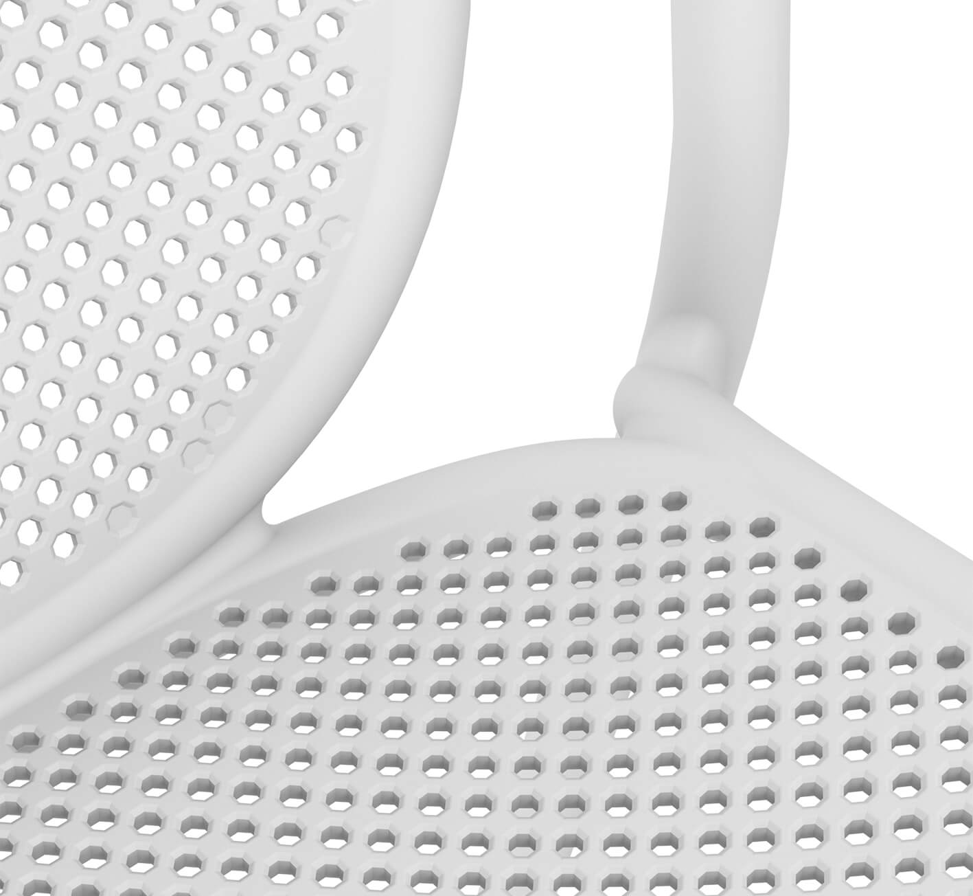 Стул выполнен из полипропилена с армирующими добавками, благодаря которым повышается жесткость и надежность.