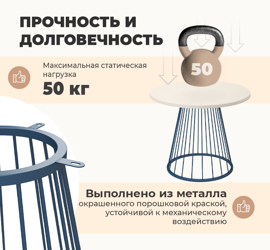 НАДЁЖНОЕ МЕТАЛЛИЧЕСКОЕ ПОДСТОЛЬЕ окрашено порошковой краской, устойчивой к механическим повреждениям и износу. Основание выполнено из трубы 20х20 мм и прутков 10 мм.