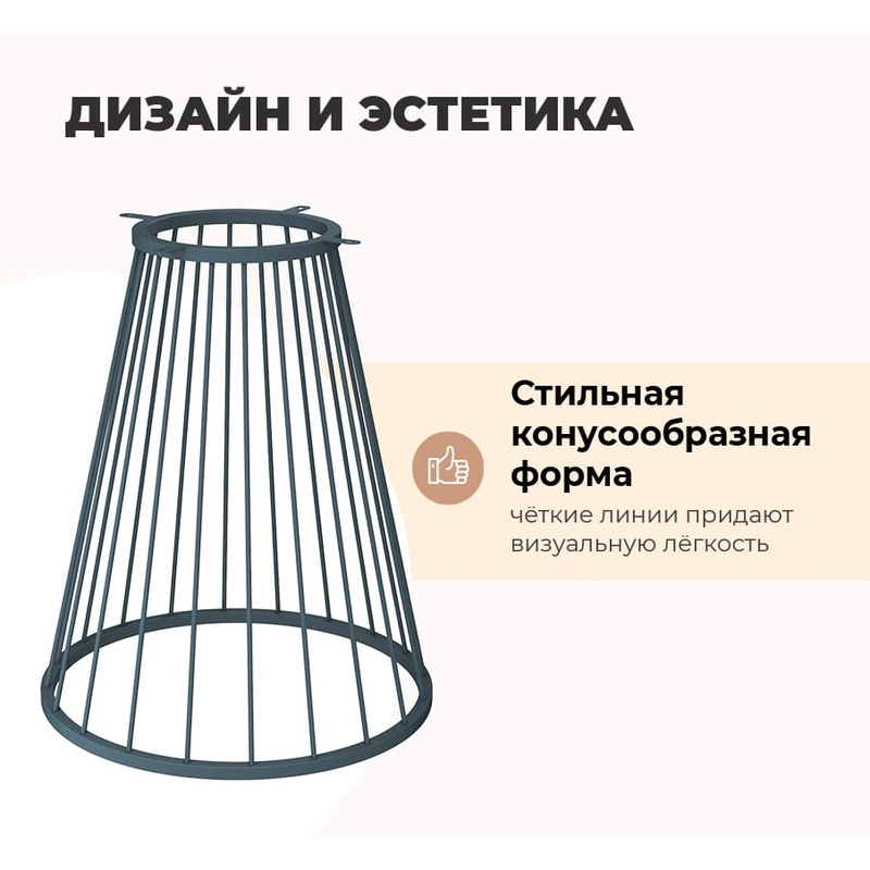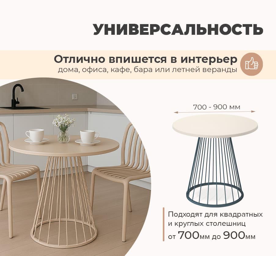 Металлическое подстолье SHT-TU85 привлекает внимание своей выразительной конусообразной формой — решение, которое сразу выделяет его на фоне обычных моделей. Сужающаяся к верху конструкция придаёт подстолью динамику и визуальную лёгкость, создавая ощущение архитектурной завершённости. Благодаря лаконичным линиям и геометрической гармонии, модель прекрасно вписывается в любой интерьер, от строго минимализма до стильного лофта.