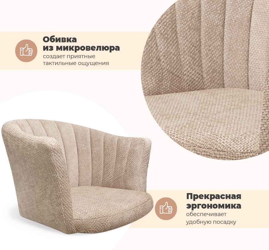 СТИЛЬНЫЙ ДИЗАЙН оригинальный вид сидению придает вертикальная прострочка спинки. Благодаря натуральному цвету микровелюра – готовое кресло способно преобразить обстановку и добавить естественности. Практичная расцветка делает применение данного сидения еще более универсальным.