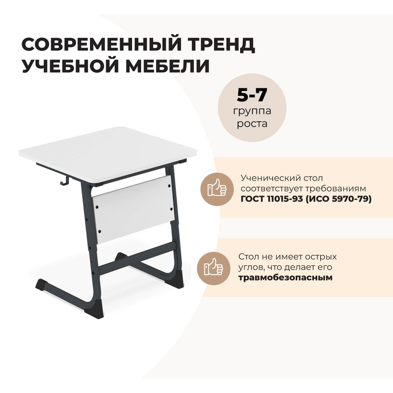 Ученический стол полностью соответствует требованиям ГОСТ 11015-93 (ИСО 5970-79) и занесен в Реестр Минпромторга РФ