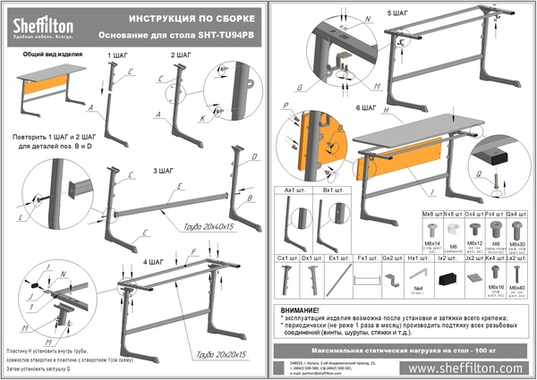 Максимальная нагрузка на стол -100 кг.