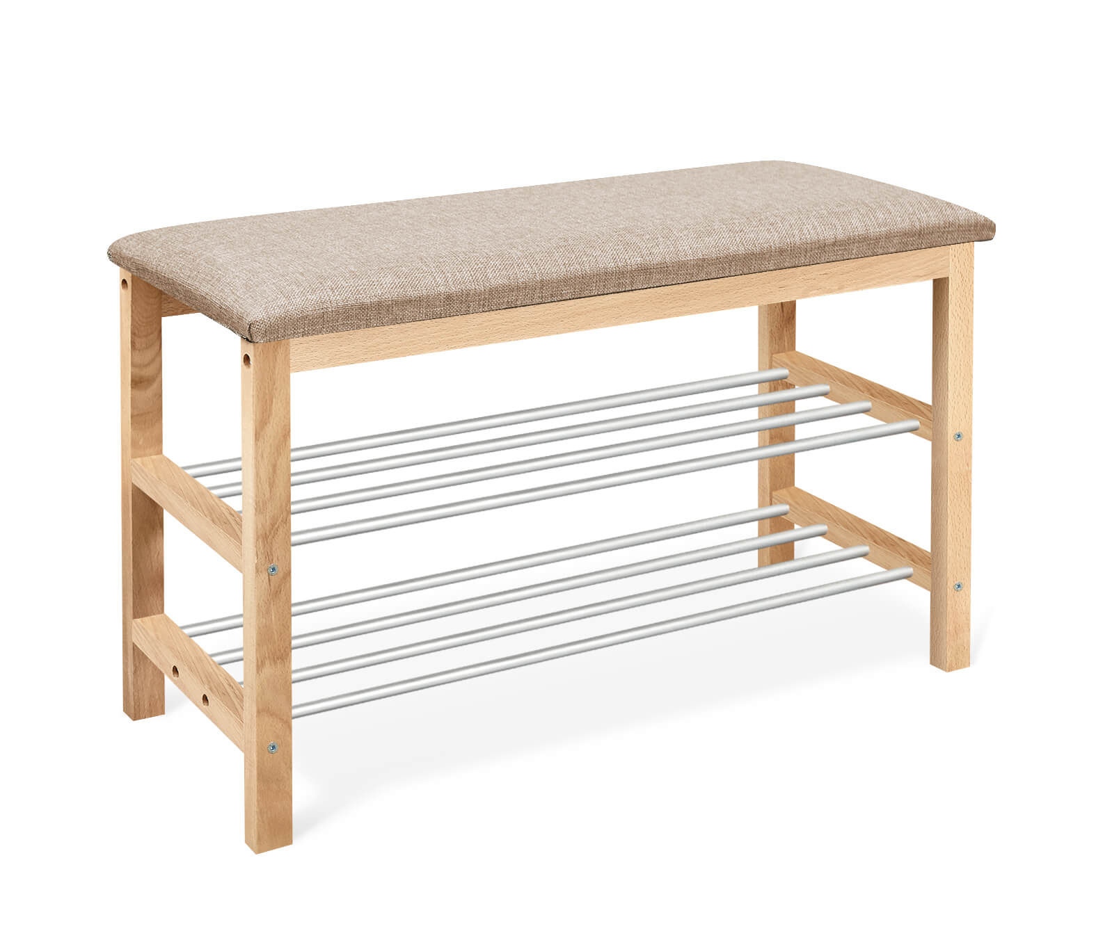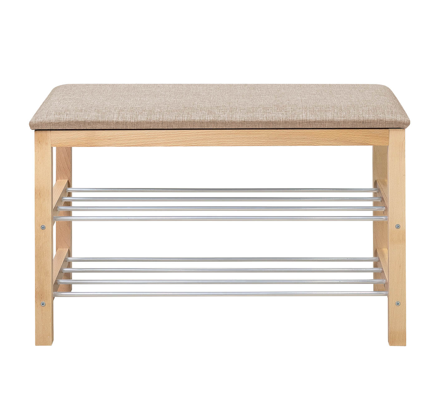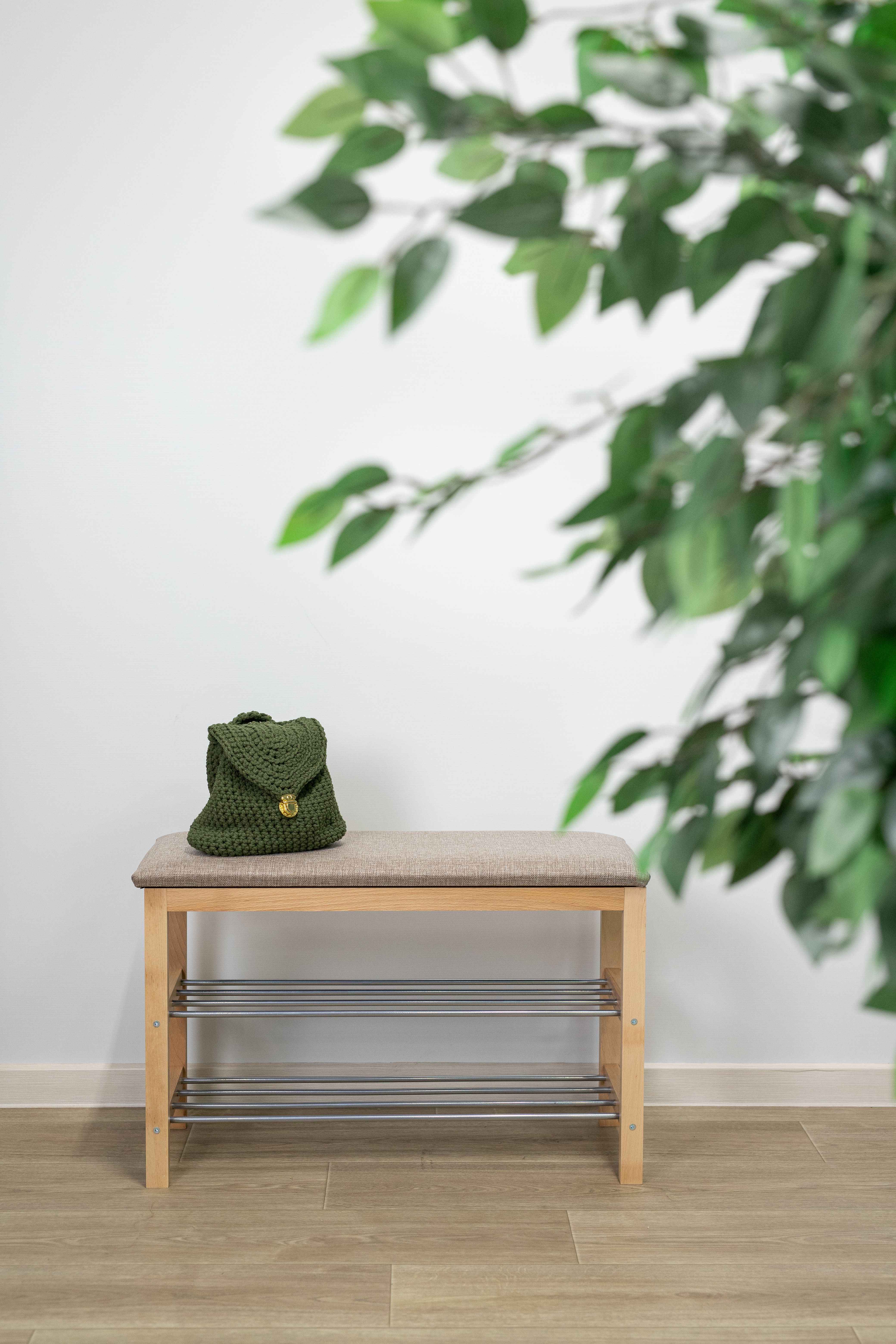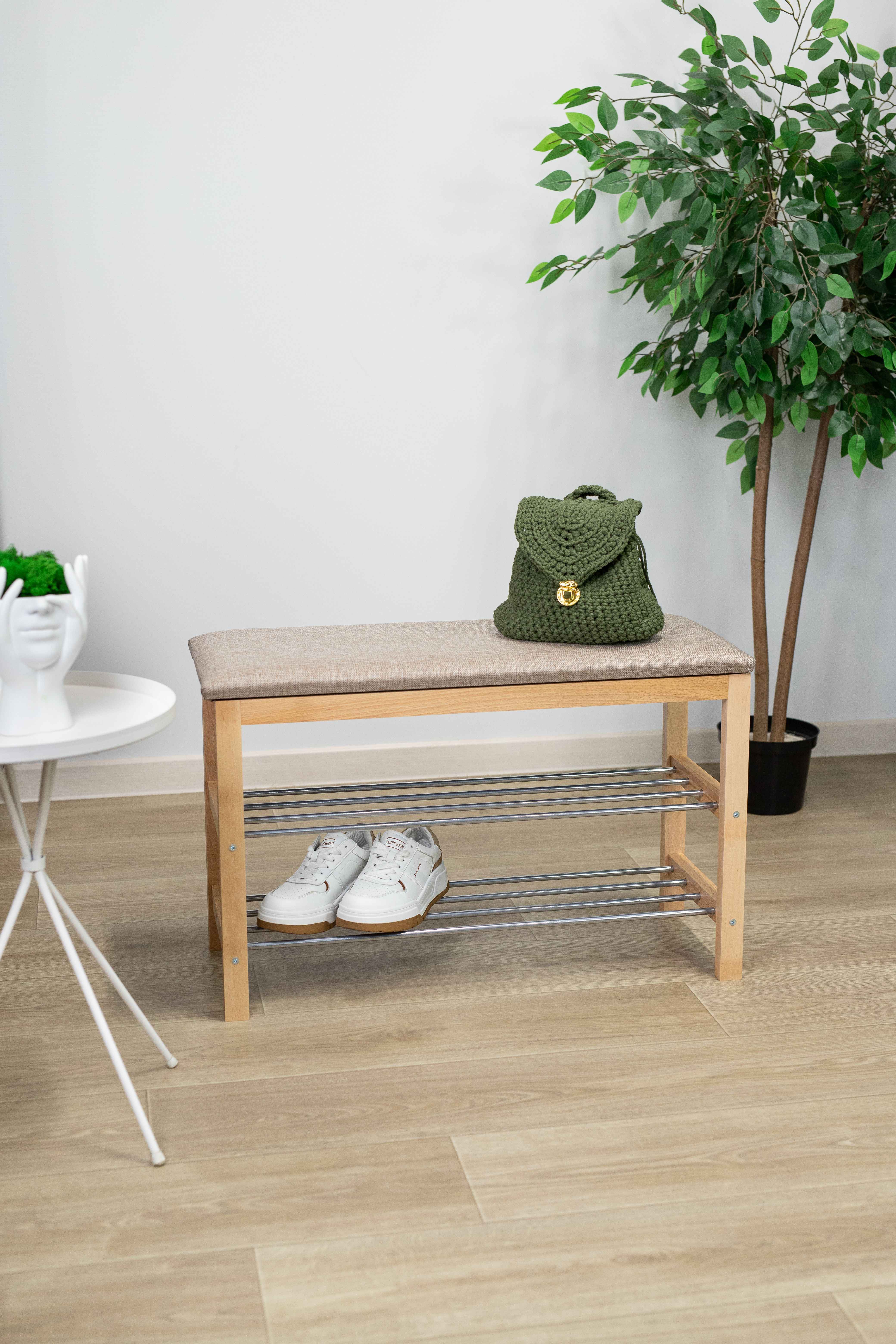 Уютная банкетка с мягким сидением и полками для размещения обуви и тапочек.