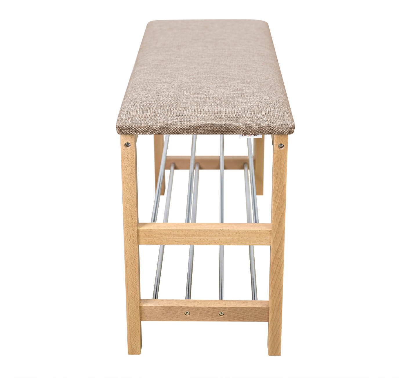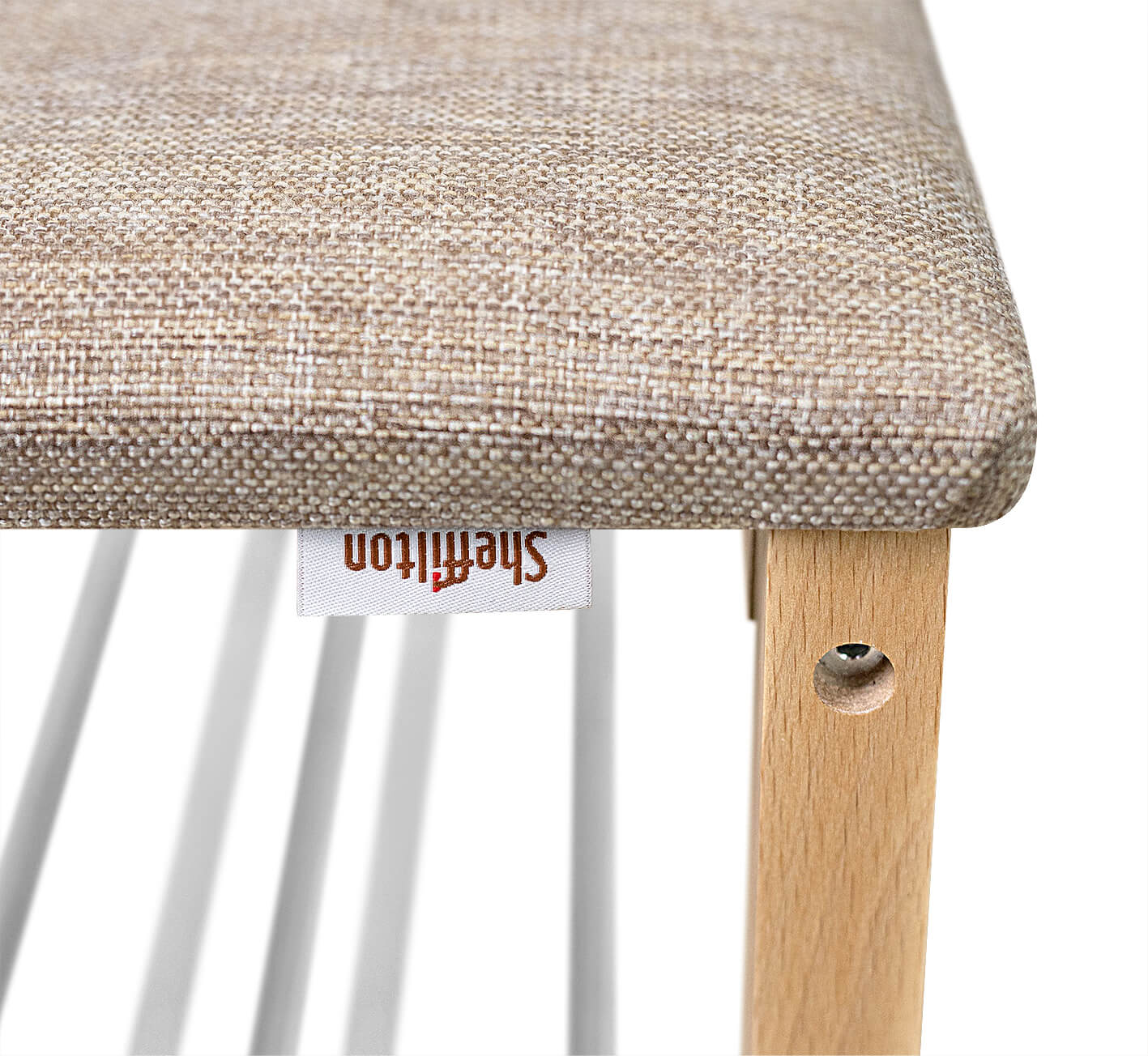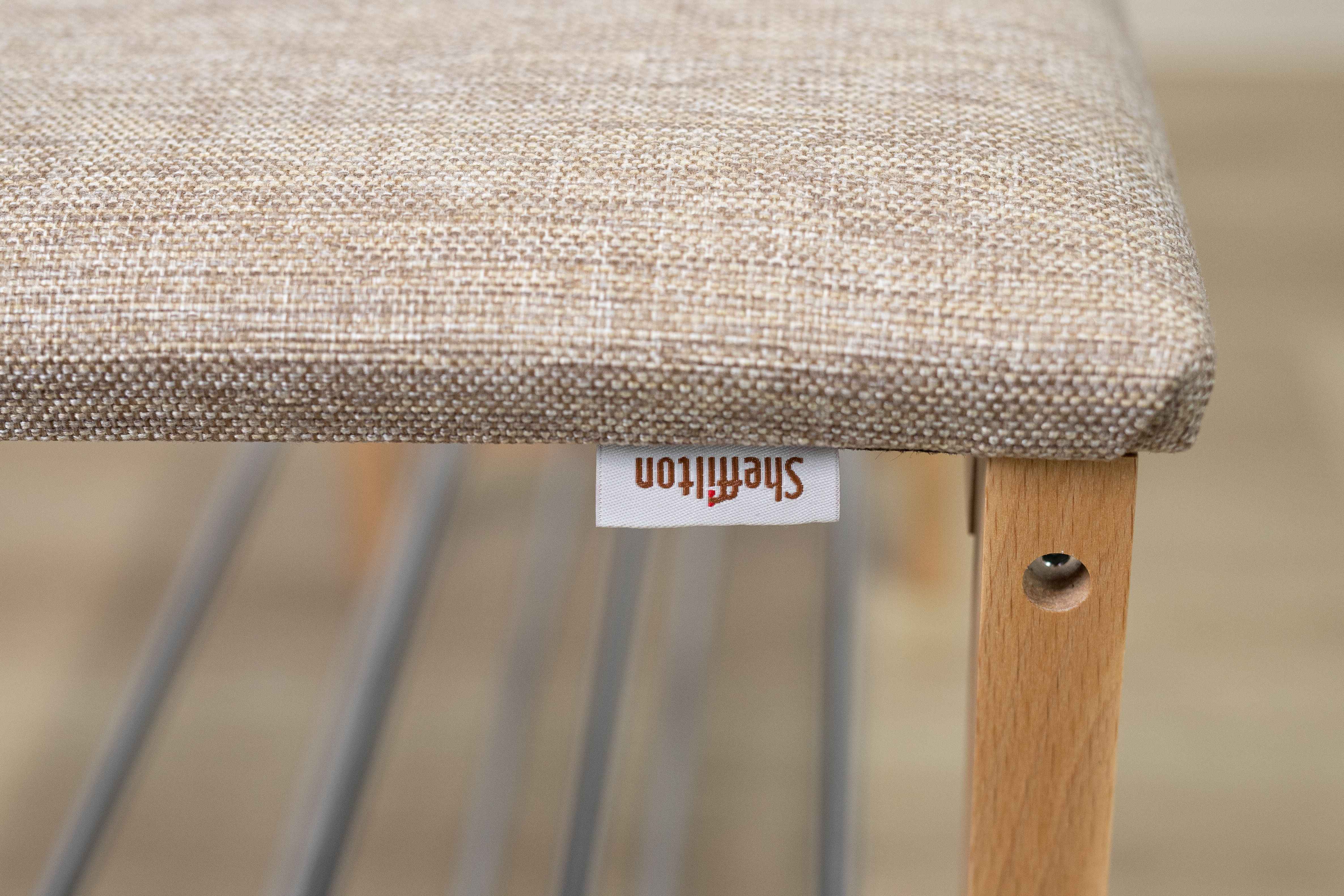 Ножки выполнены из массива дерева, толщиной 35 мм., сидение из рогожки, полки из металла, диаметр/толщина трубы 12х0,8 мм.