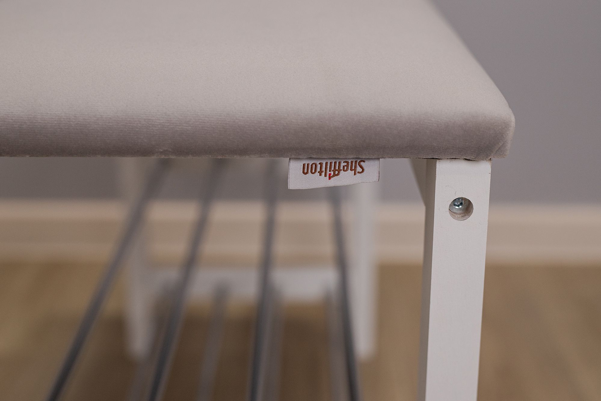 Ножки выполнены из массива дерева, толщиной 35 мм., сиденье из микровелюра, полки из металла, диаметр/толщина трубы 12х0,8 мм.
