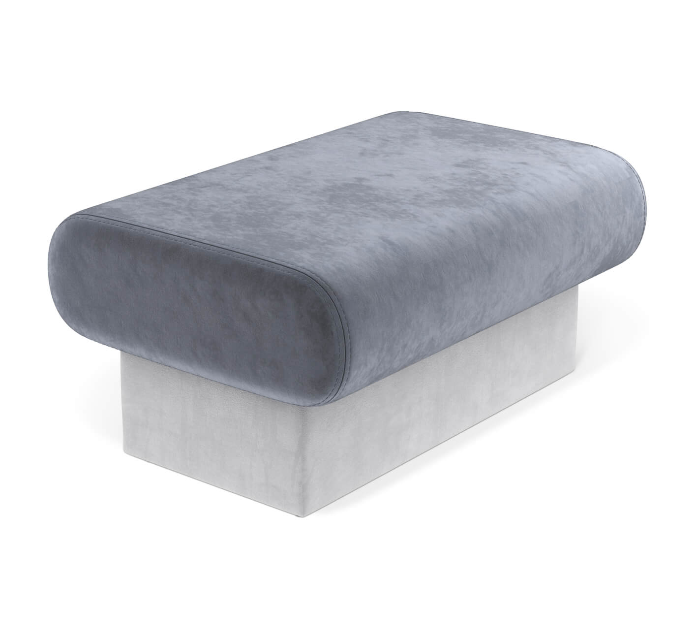 Скруглённое сиденье словно "парит" над устойчивым основанием банкетки, создавая эффект лёгкости при визуальной массивности формы. Такой силуэт делает банкетку узнаваемой и превращает её в самостоятельный акцент интерьера.