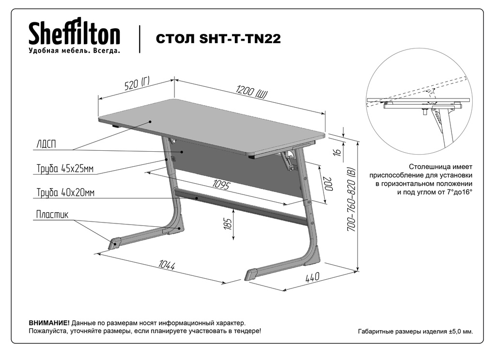 РЕГУЛИРУЕМЫЙ УГОЛ НАКЛОНА СТОЛЕШНИЦЫ