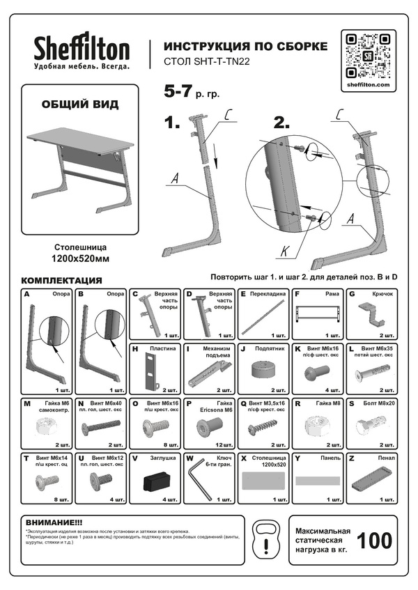 Максимальная нагрузка на стол -100 кг.