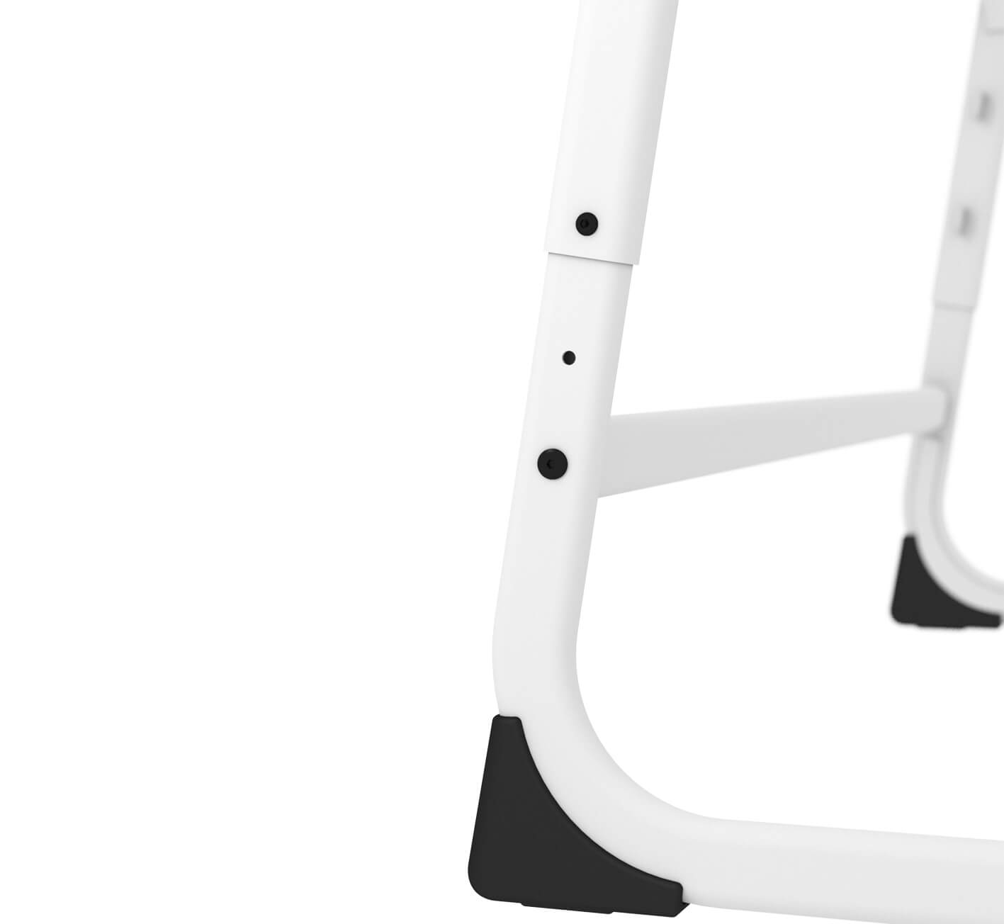 Столешница не имеет острых углов — все углы аккуратно закруглены, что делает ее травмобезопасной. Специальные заглушки каркаса предотвращают царапины на полу во время эксплуатации стула и травмобезопасны.
