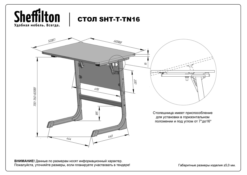 РЕГУЛИРУЕМЫЙ УГОЛ НАКЛОНА СТОЛЕШНИЦЫ