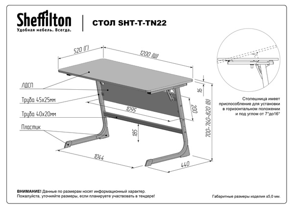 РЕГУЛИРУЕМЫЙ УГОЛ НАКЛОНА СТОЛЕШНИЦЫ
