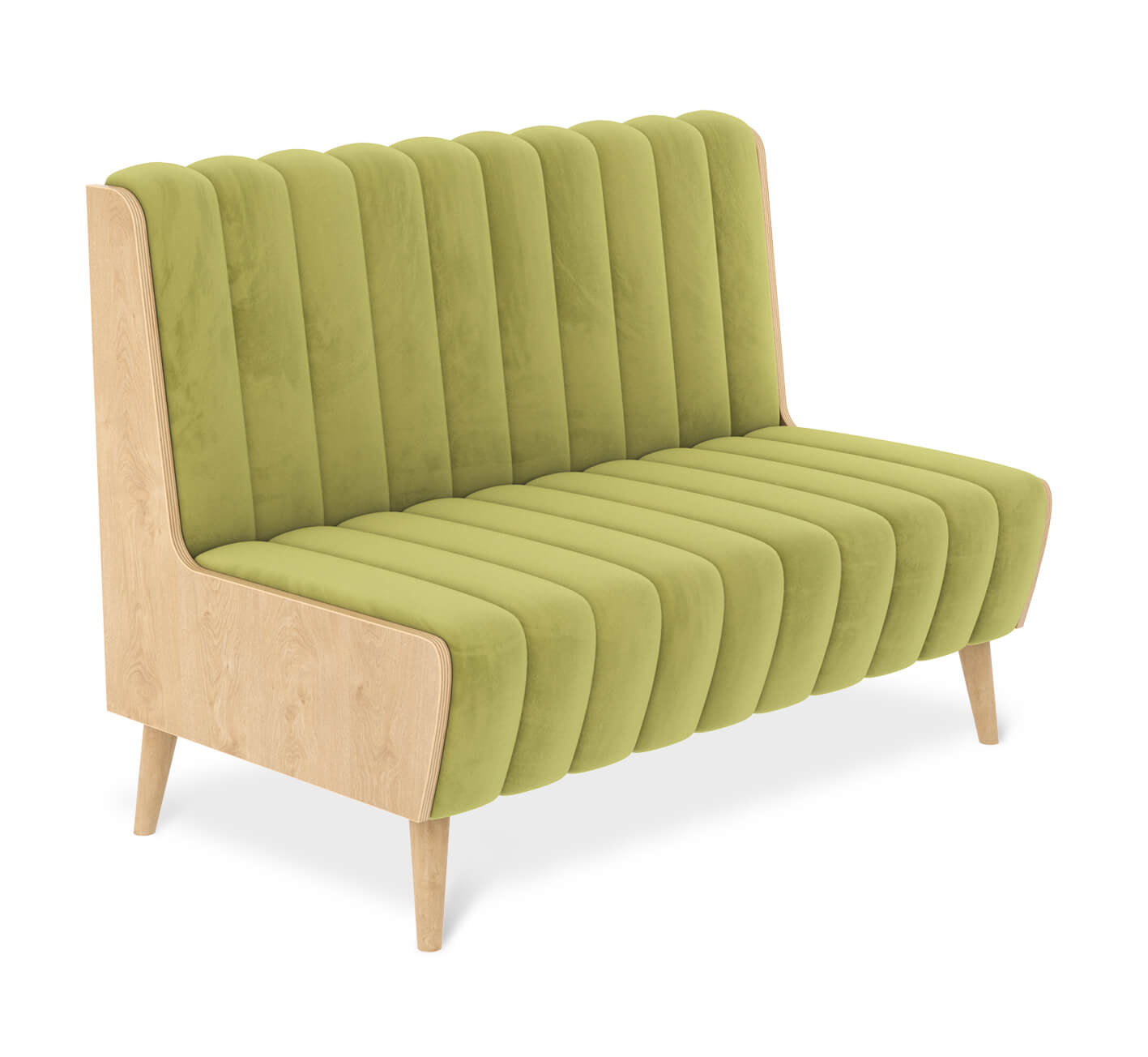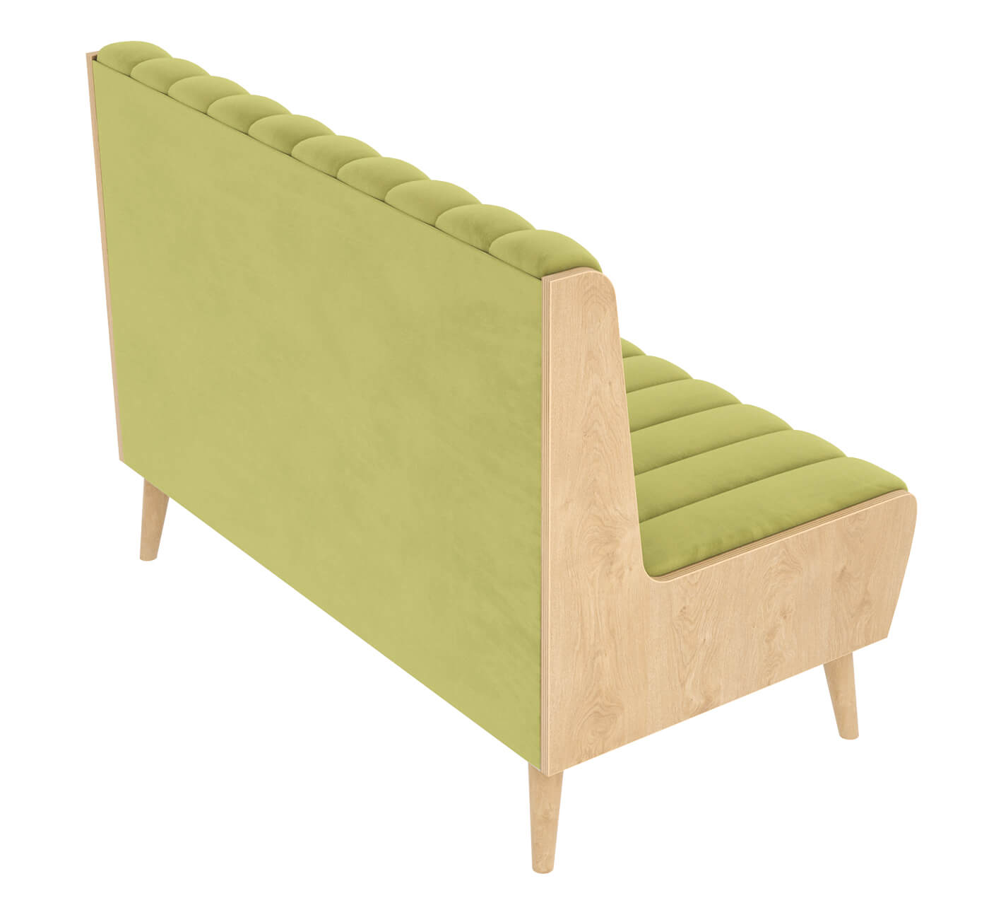 Высокая спинка делает модель особенно комфортной и визуально основательной, а лаконичные деревянные опоры придают дивану легкость. Такой диван легко впишется как в современные общественные пространства, так и в интерьер дома, где хочется создать уютную и стильную обстановку.