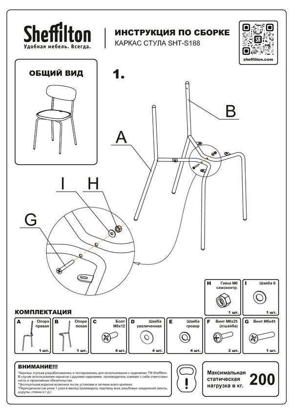 Каркасы стульев разработаны и протестированы для использования исключительно с сиденьями ТМ Sheffilton. При использовании с сиденьями других производителей компания не несёт ответственности и гарантийных обязательств.