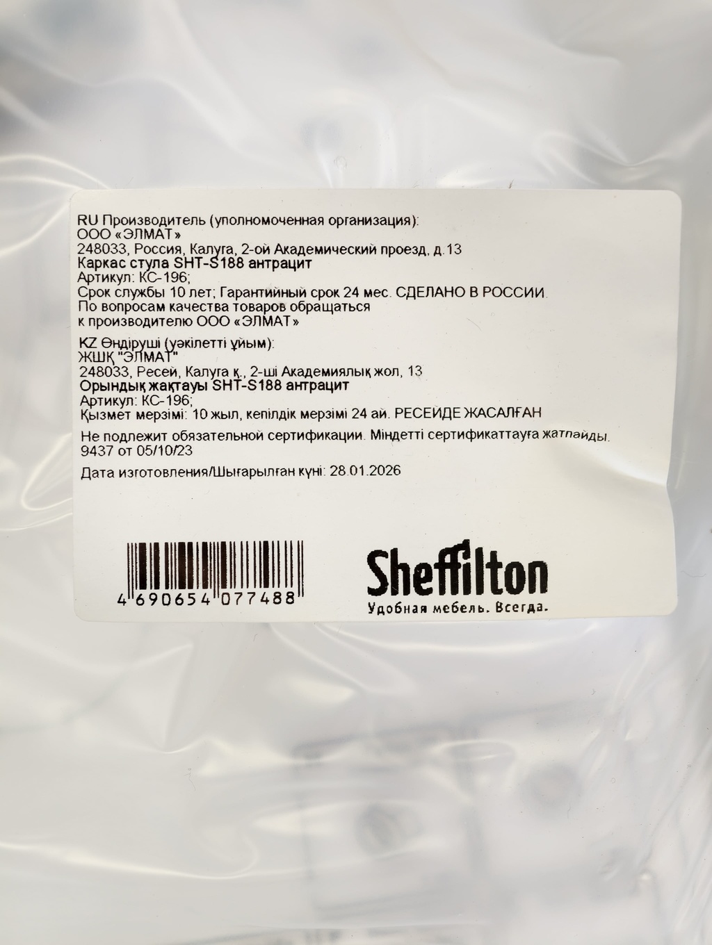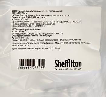 Каркасы стульев разработаны и протестированы для использования исключительно с сиденьями ТМ Sheffilton. При использовании с сиденьями других производителей компания не несёт ответственности и гарантийных обязательств.