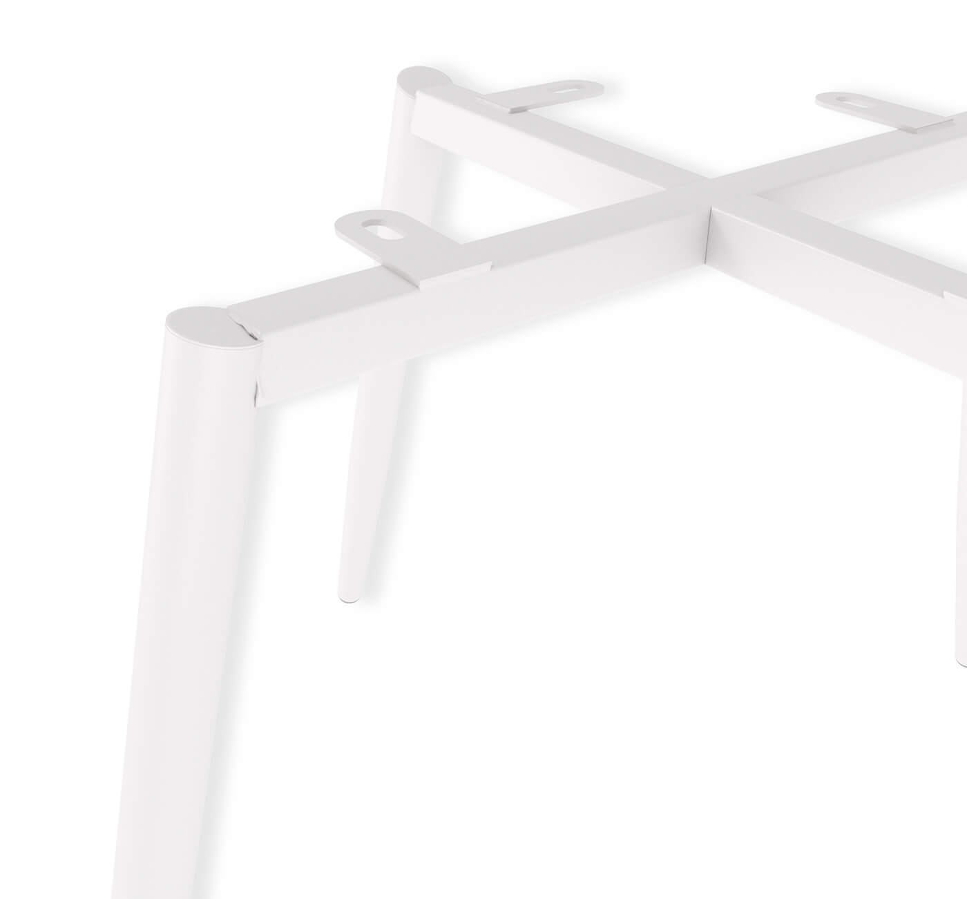 ПРОЧНОСТЬ И ДОЛГОВЕЧНОСТЬ. Ножки каркаса выполнены из металлической трубы диаметром 25 мм. Верхняя крестовина каркаса с приварными фланцами выполнена из квадратной трубы 20х20 мм. Каркас не разборный и окрашен порошковой краской, устойчивой к механическому воздействию. Максимальная статическая нагрузка на каркас – 200 кг.