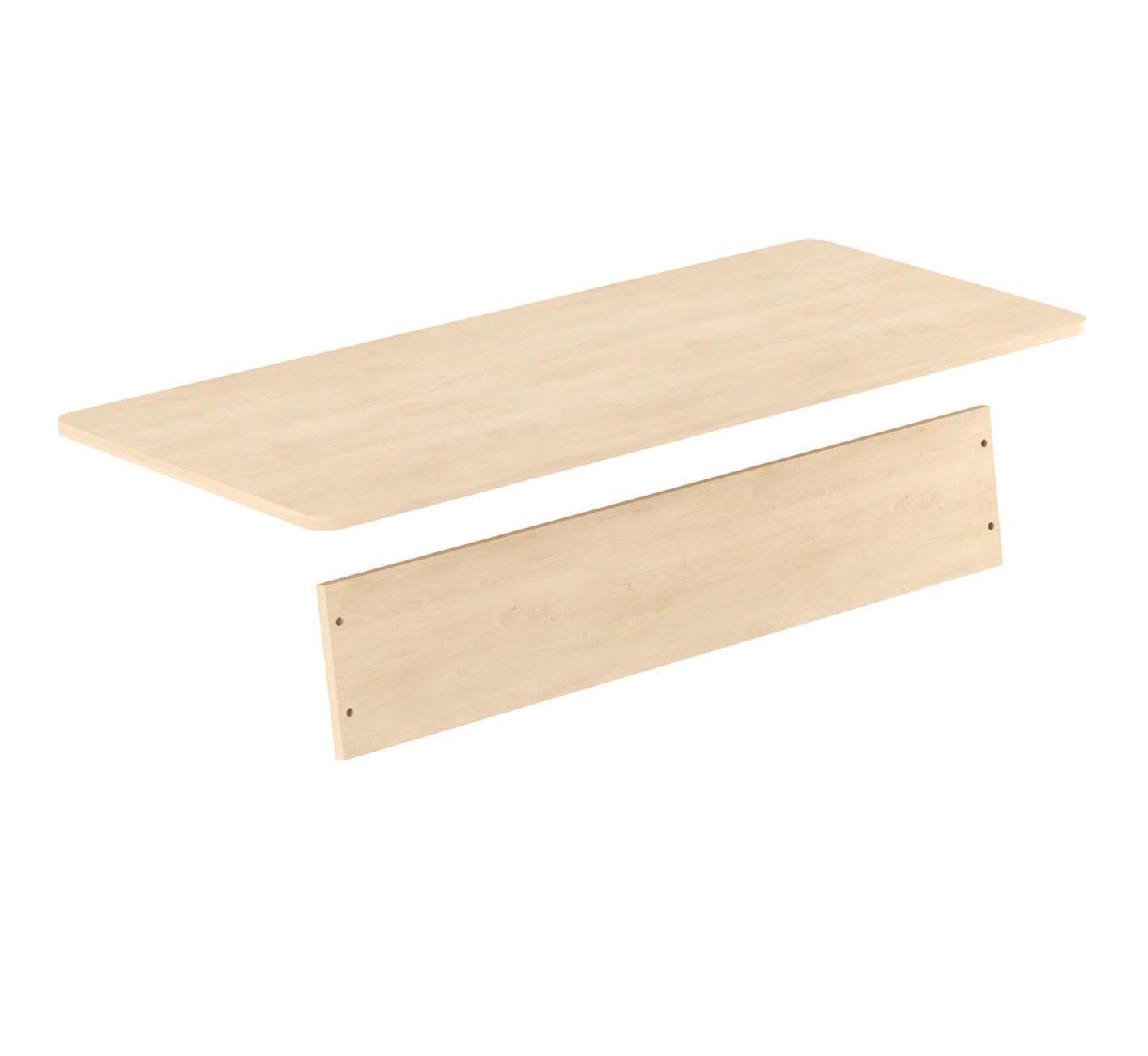 Столешница выполнена из ЛДСП и покрыта специальной пленкой, которая формирует защитный слой от внешнего воздействия. Край столешницы обработан ударопрочной кромкой из ПВХ.