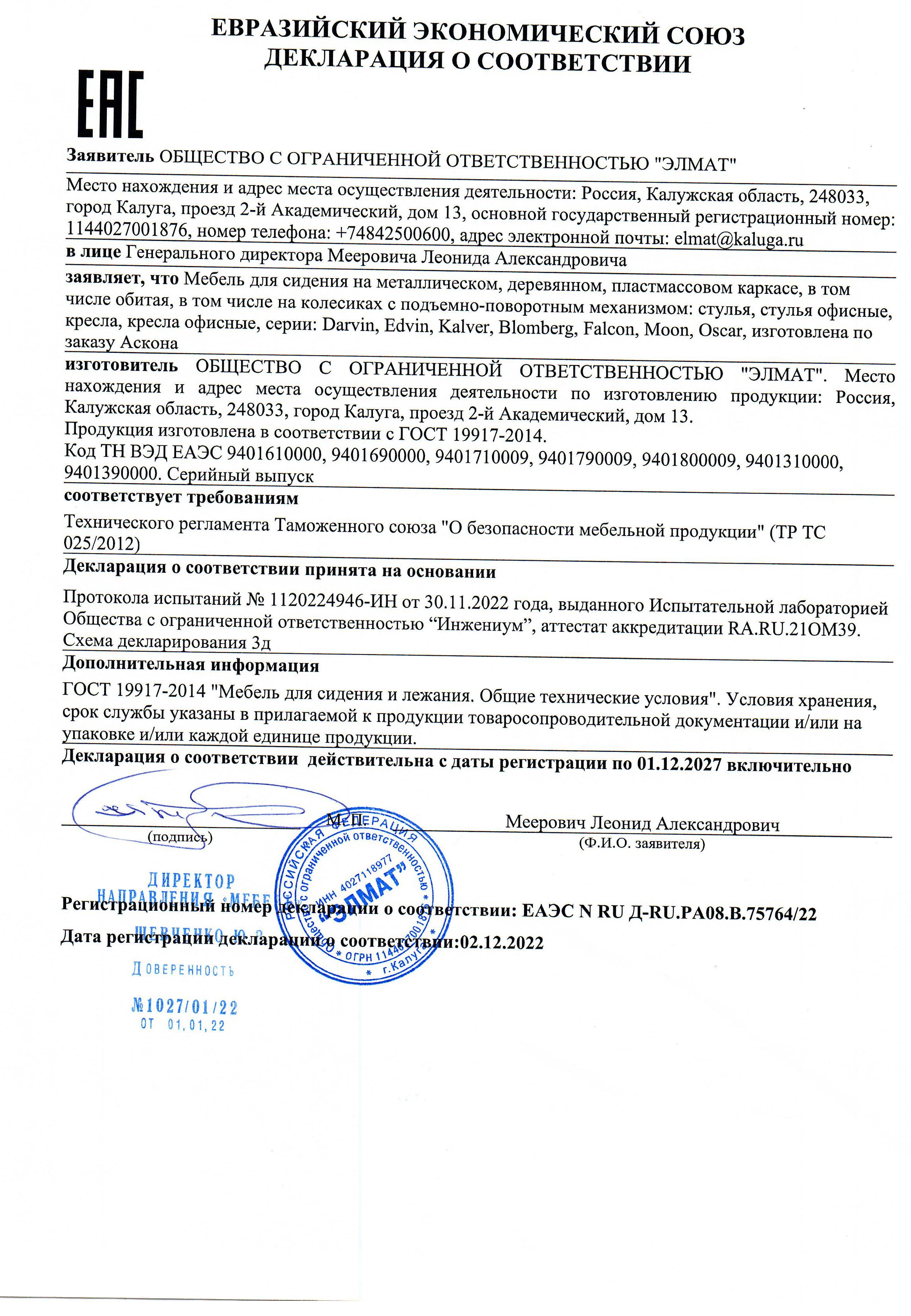 Максимальная статическая нагрузка на кресло – 200 кг.
