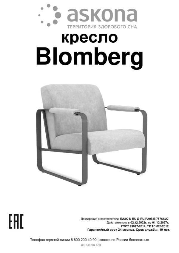 Кресло Blomberg тvel48 (тк. velutto 48)