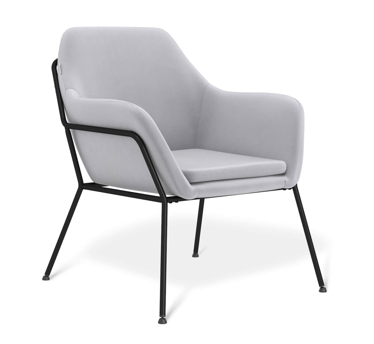 Мягкое уютное кресло в современном стиле, обитое тканью светло-серого оттенка из рогожки, на каркасе из черного металла. Благодаря своему универсальному дизайну и лаконичному сочетанию цветов такое кресло гармонично впишется практически в любой современный интерьер кафе, бара, ресторана, офиса, общественных учреждений, залов ожидания или дома.